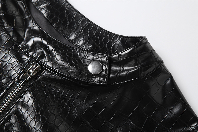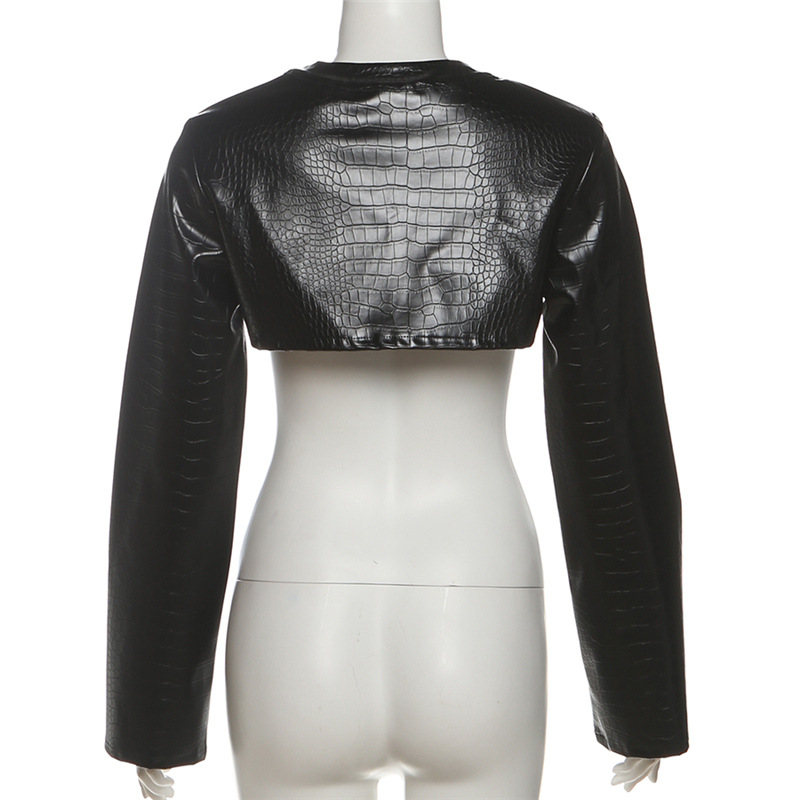 Fall Women Clothing Street Trend Sexy Short Long Sleeve Zipper Faux Leather Slim Jacket