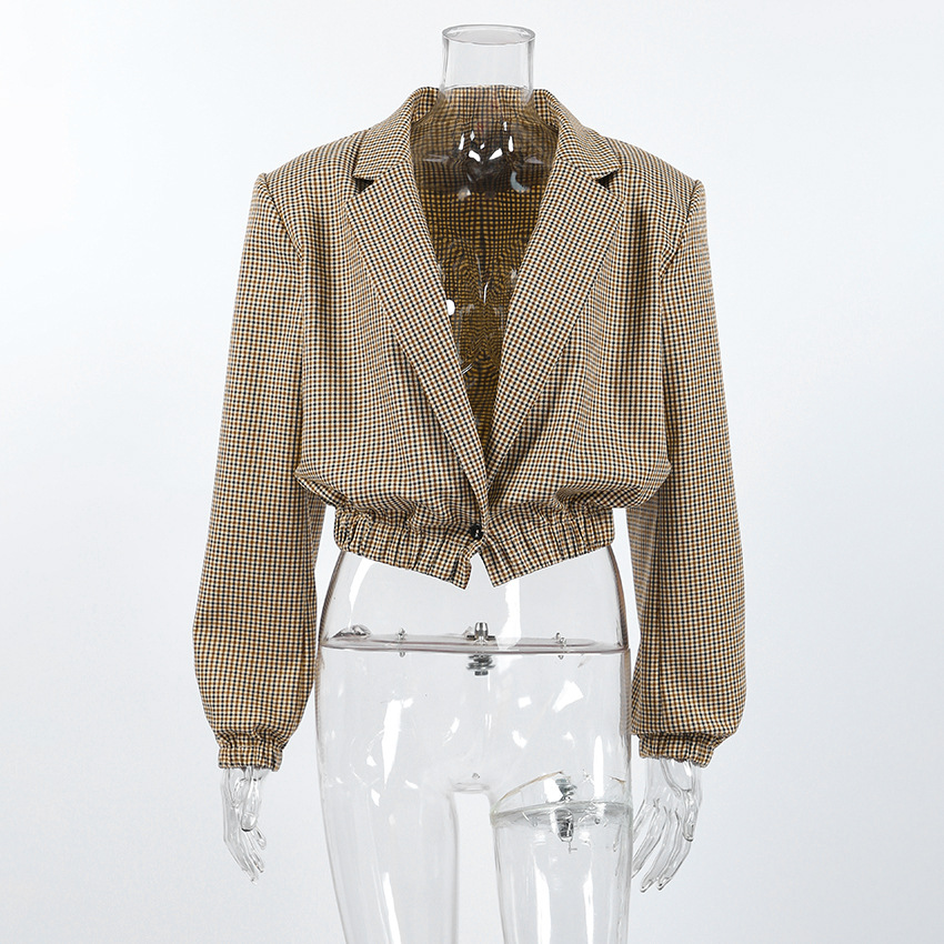 Fall Women Short Plaid Retro Loose Slimming Blazer