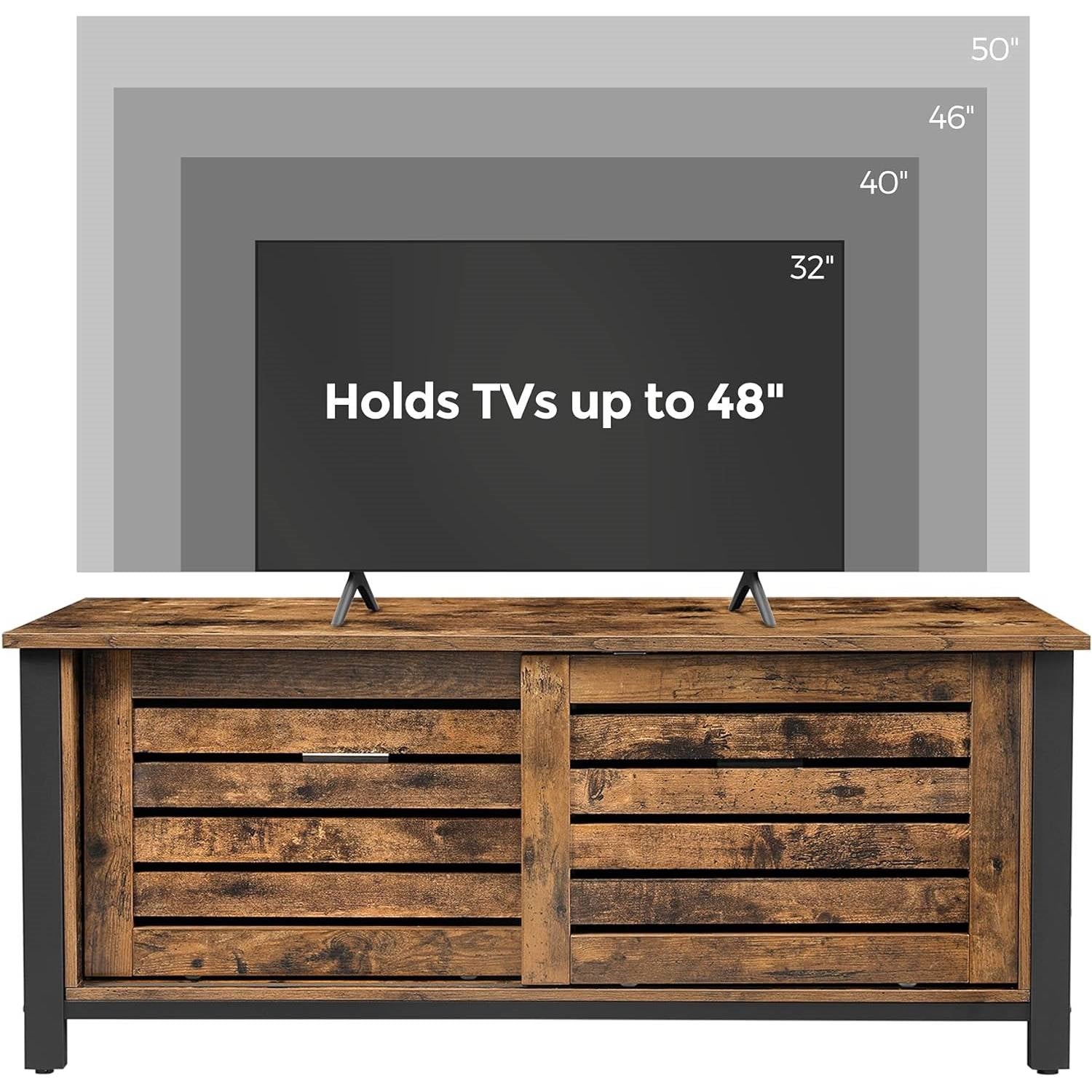 - Farmhouse TV Stand Entertainment Center w/ Sliding Wood Doors for TV up to 50-in