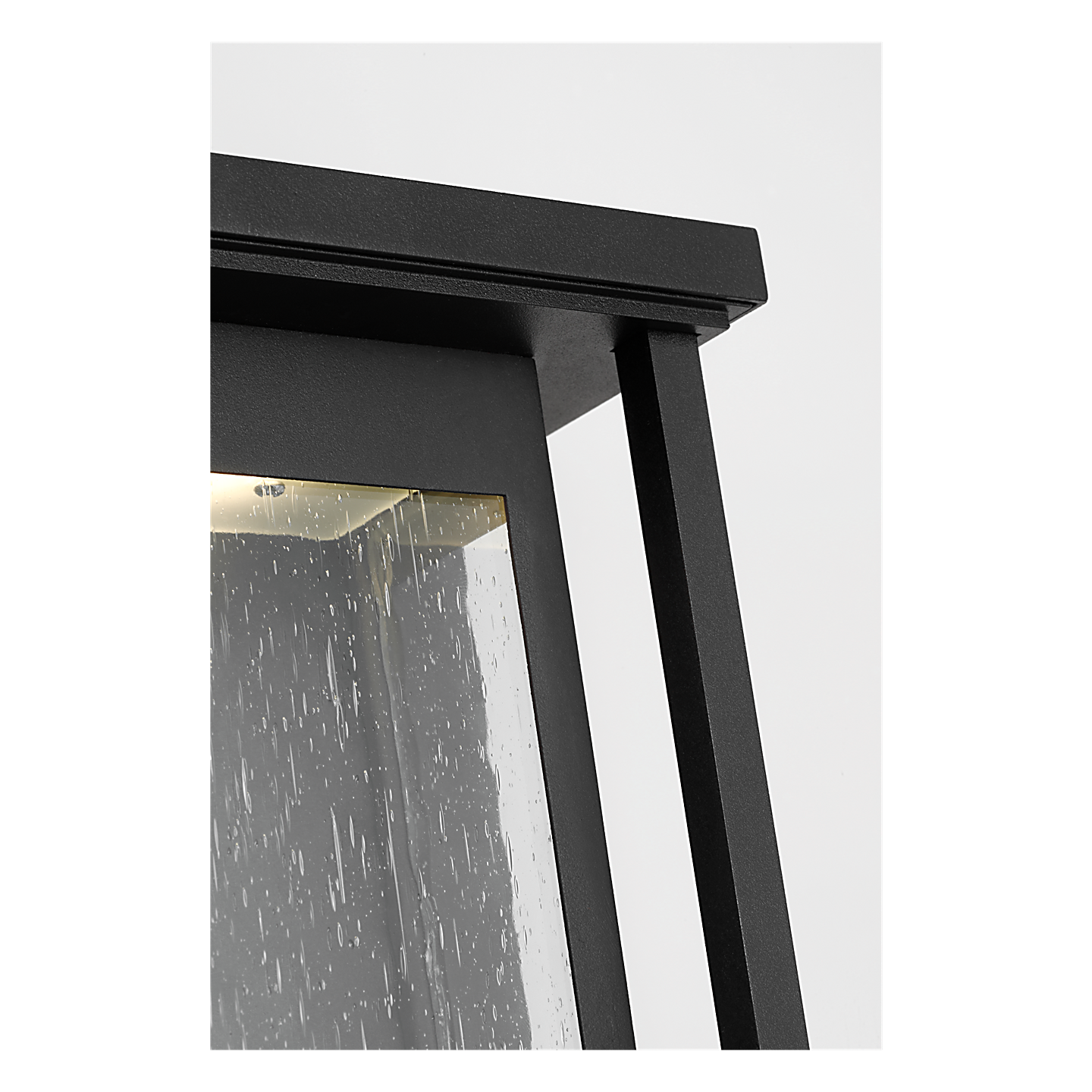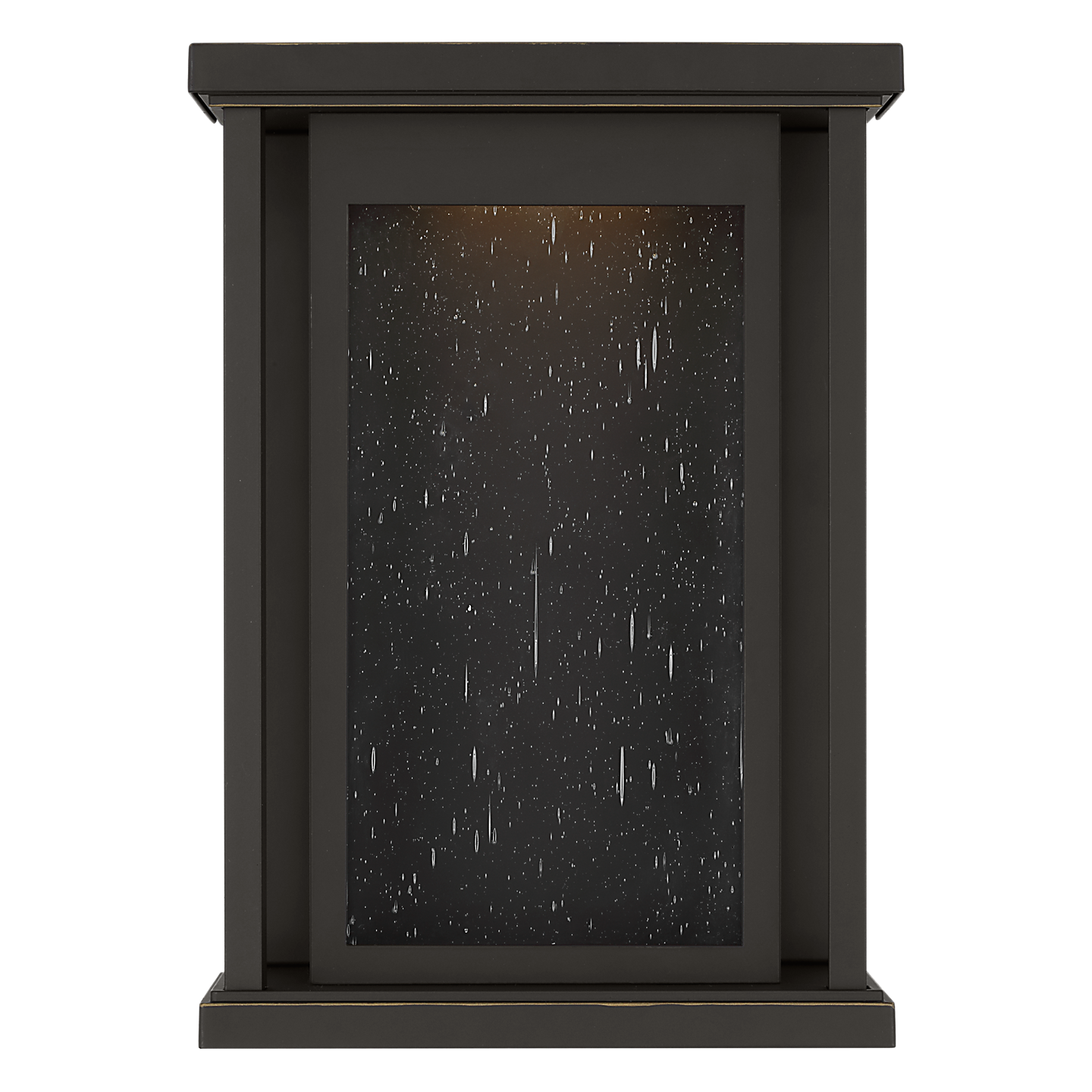The Faywood Small Wall Lantern features a narrow rectangular frame with clear or seeded glass panels and an integrated LED source recessed in the ceiling. Designed for accent lighting on exterior walls, its compact scale suits entryways, porches, or tight architectural placements. Wet rated.