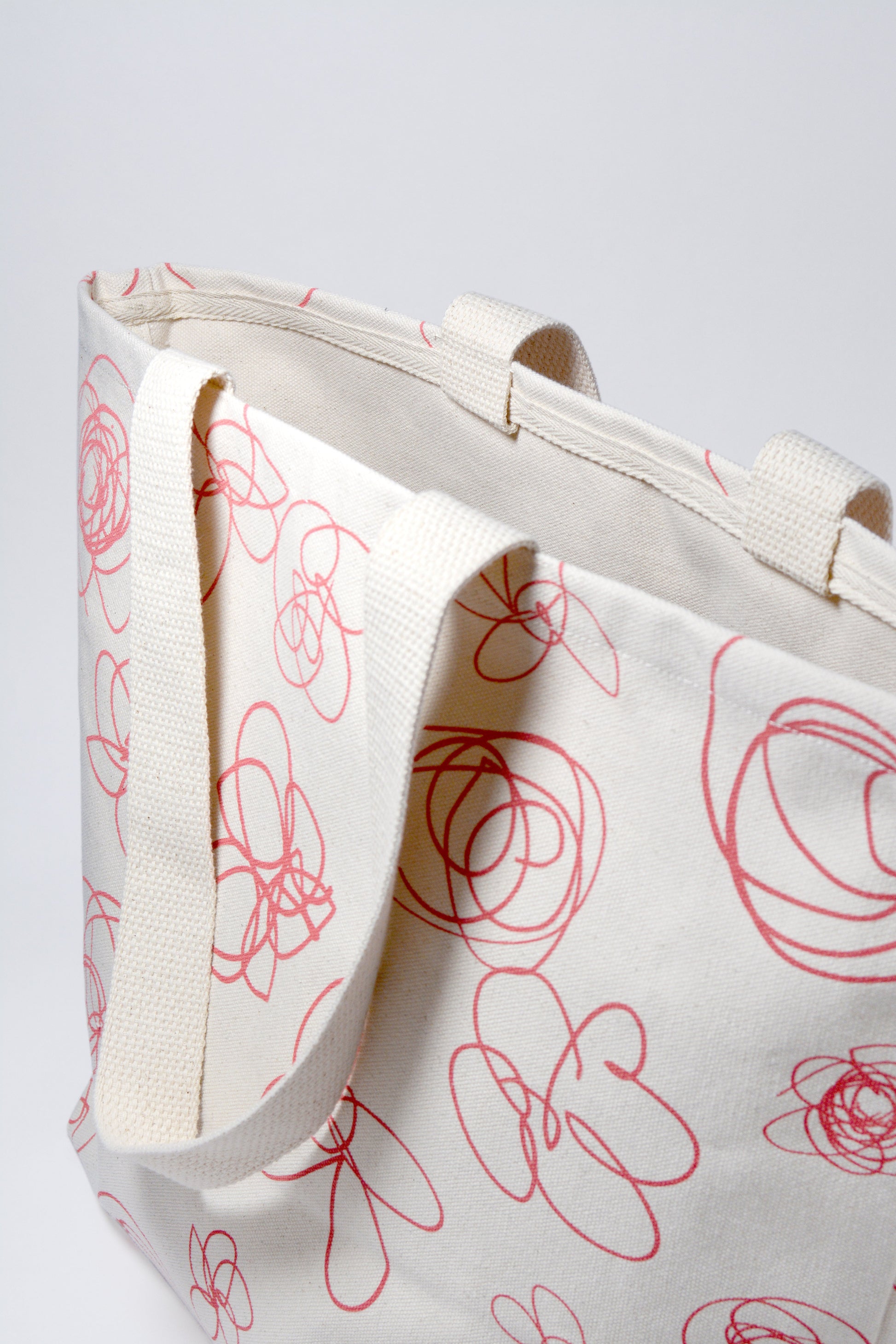 - Screenprinted in Coral using eco-friendly, non-toxic ink