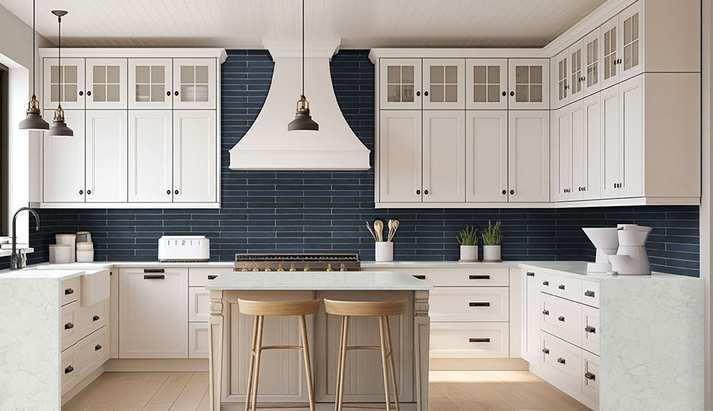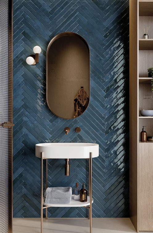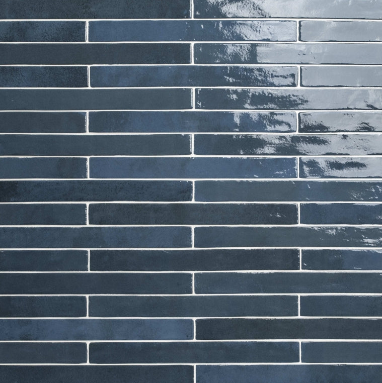 Elevate your space with the chic midnight hues of Hale Navy porcelain tiles. These elongated 2" x 18" tiles showcase a breathtaking glossy finish adorned with captivating highlights of deep navy and regal blue, creating a striking presence in any environment. Versatile and resilient, these tiles present numerous installation possibilities, whether arranged horizontally, vertically, or in sophisticated herringbone patterns. Ideal for both floor and wall embellishments, including expansive backsplashes, captivating fireplace surrounds, and enchanting waterfall facades, they seamlessly complement residential and commercial interiors and exteriors alike.
