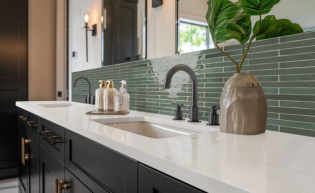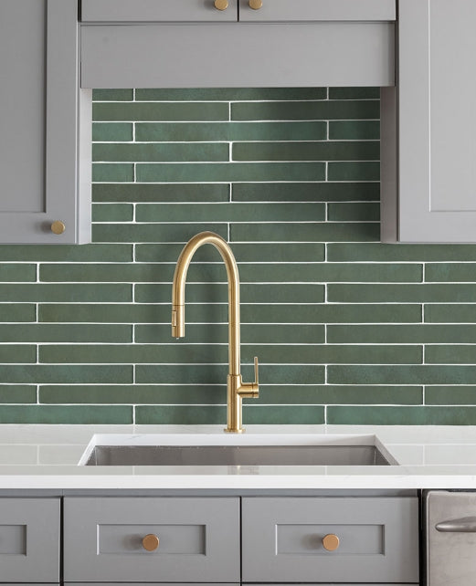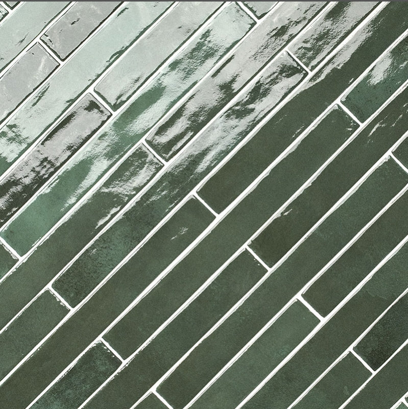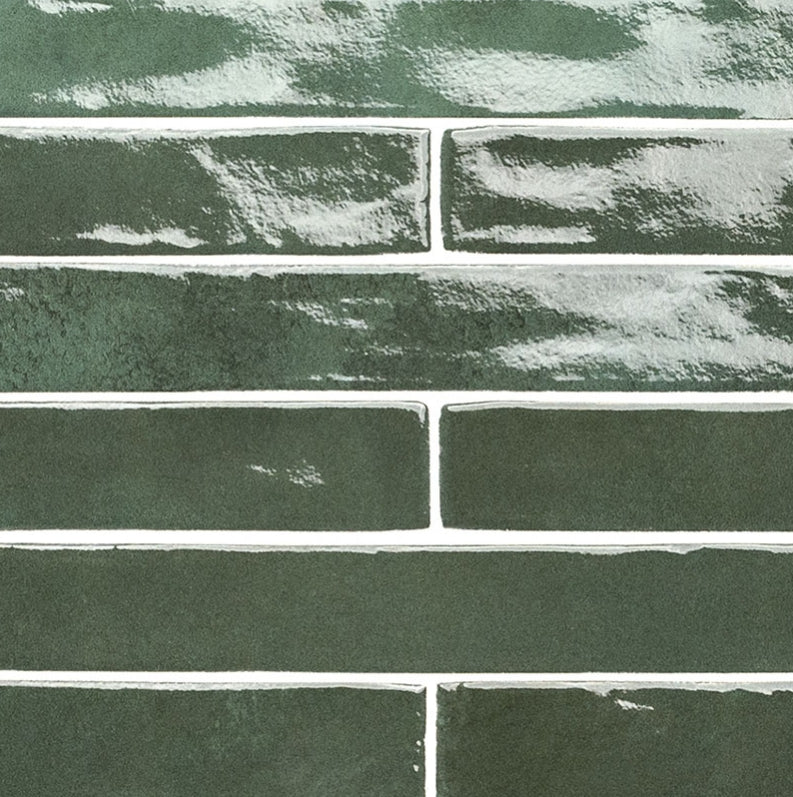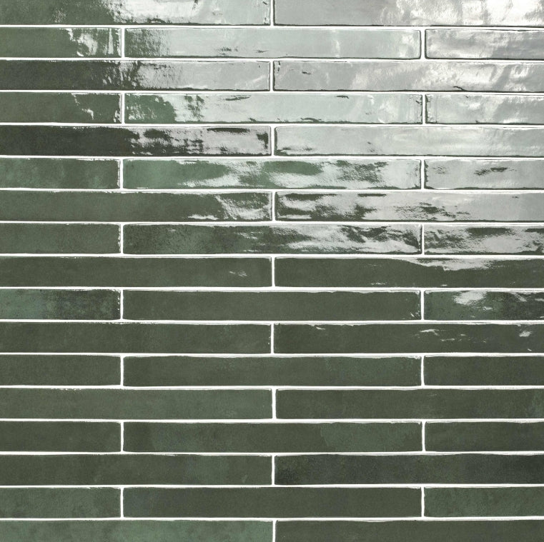 Revitalize your space with lush Racing Green porcelain tiles, boasting a long 2" x 18" size and a striking glossy finish that accentuates the various shades of green, creating a bold statement wherever they're placed. Crafted for durability and versatility, these tiles offer multiple installation options, whether laid horizontally, vertically, or in a herringbone pattern, suitable for floor and wall applications including full-height backsplashes, fireplace surrounds, and waterfall facades. Ideal for both residential and commercial spaces, these tiles bring a touch of elegance and vibrancy to any environment.