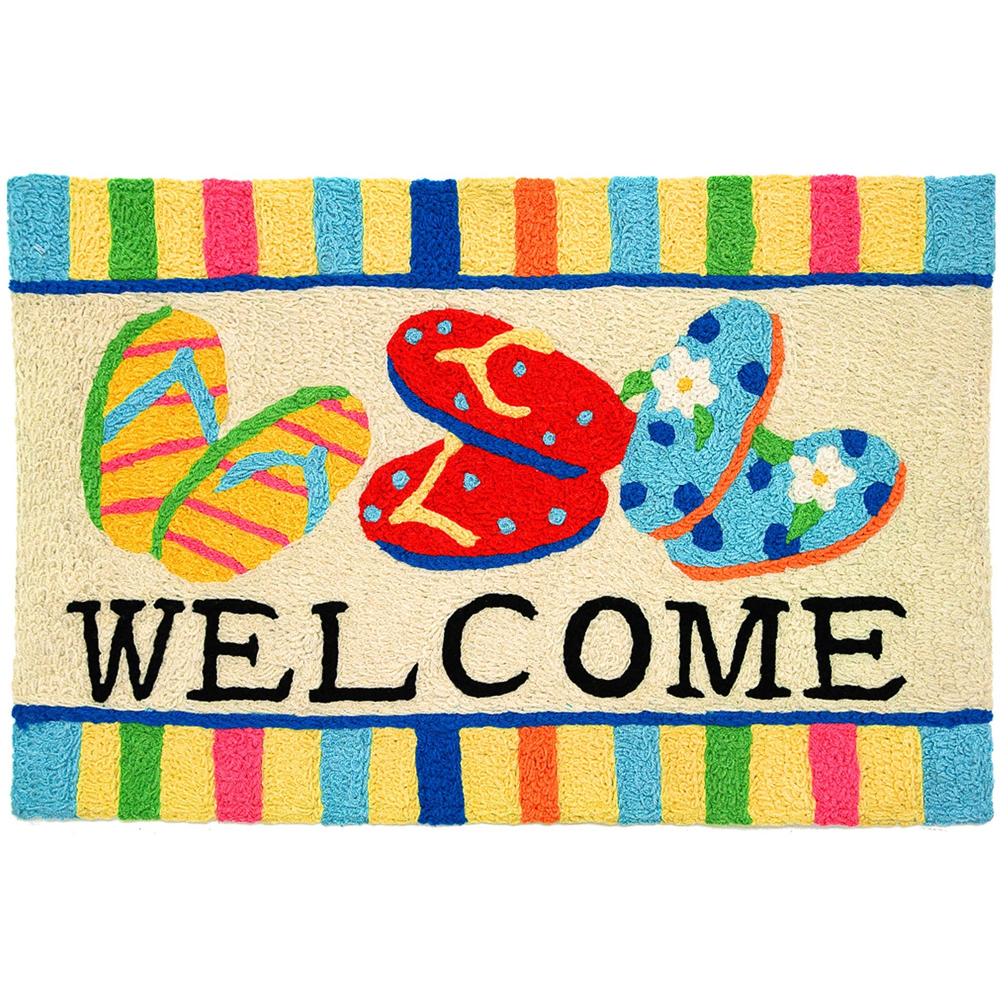 Residents and guests alike will feel welcome when setting their flip flops on this cheerful design. Black text reading “WELCOME” stands out on the pale yellow background trimmed in mult-colored stripes on this Jellybean® accent rug design. With machine washable crafting, the welcome will not wear out too soon. A rug liner is always recommended to provide slip resistance and protection to your floors.