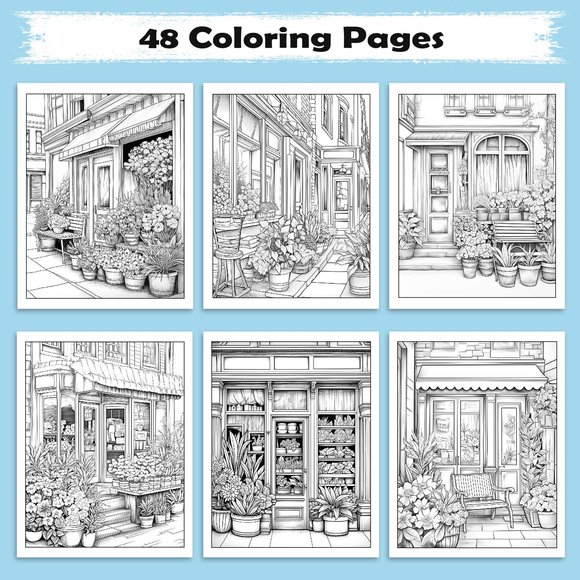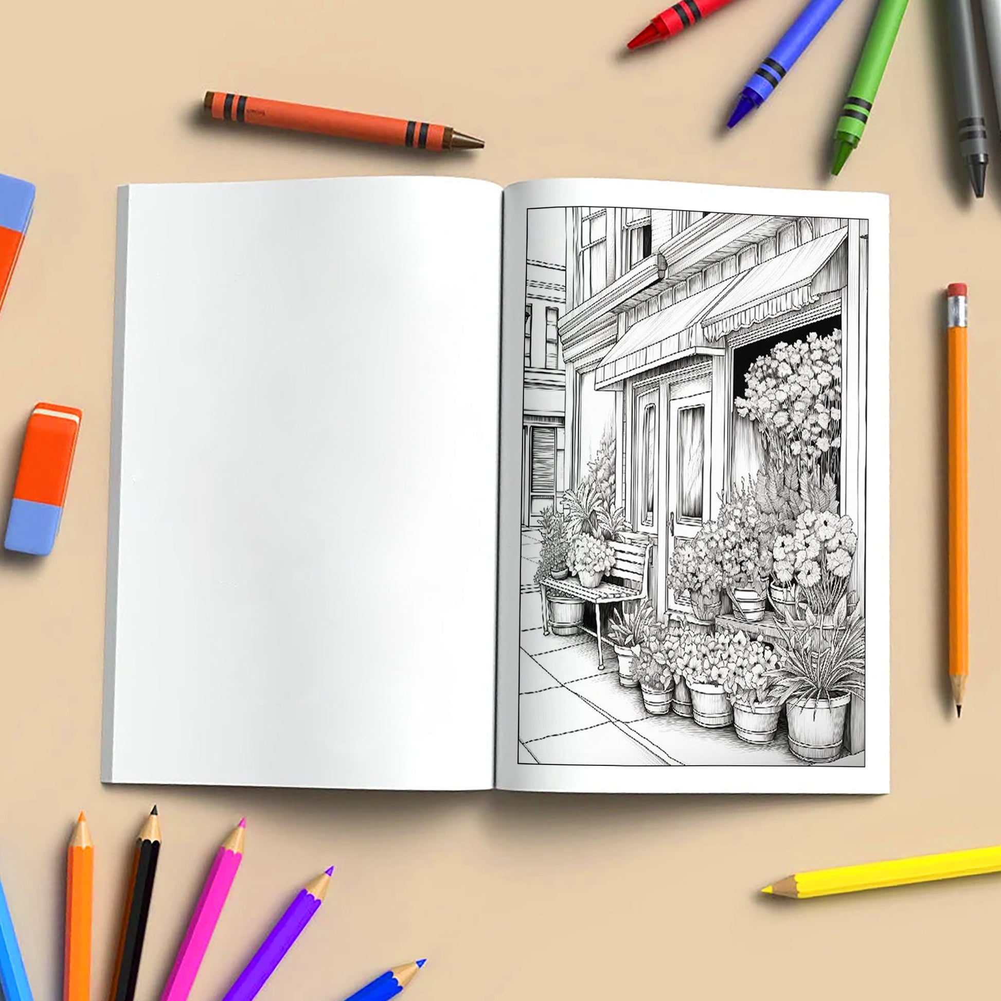 Floral Street Charm Coloring Pages – 48 Relaxing Flower Scenes for Adults