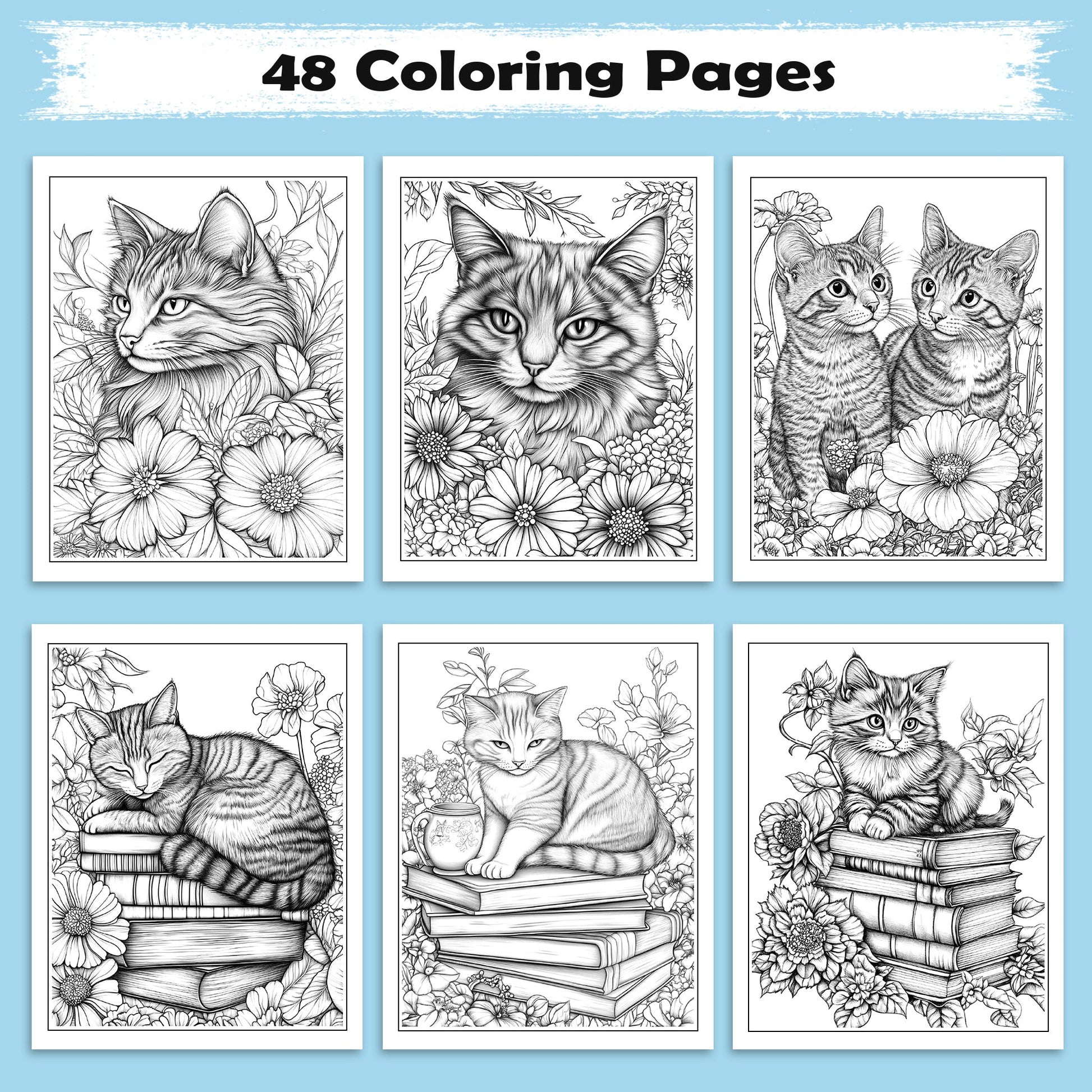 Floral Whiskers Coloring Pages – 48 Whimsical Cat and Flower Scenes for Adults