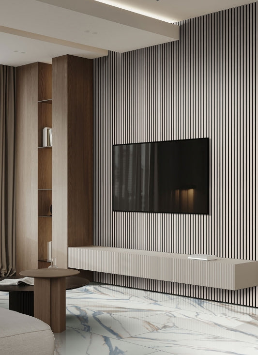 Step into a world of refined style and unparalleled acoustics with the Fog Acoustic Wood Slat Wall Panels. Bathed in a sophisticated gray hue, these fluted wood panels are the ultimate blend of chic design and cutting-edge sound technology. They don’t just absorb sound—they create an oasis of tranquility by minimizing disruptive noise from outside, while enhancing the ambiance inside. No staining or sanding required, these panels boast a stunning, low-maintenance finish that adds a touch of modern luxury to any space. Perfect for home theaters, recording studios, or anywhere that demands both stunning aesthetics and flawless sound control, the Fog panels are the ideal choice for those who crave performance and elegance in every corner.
