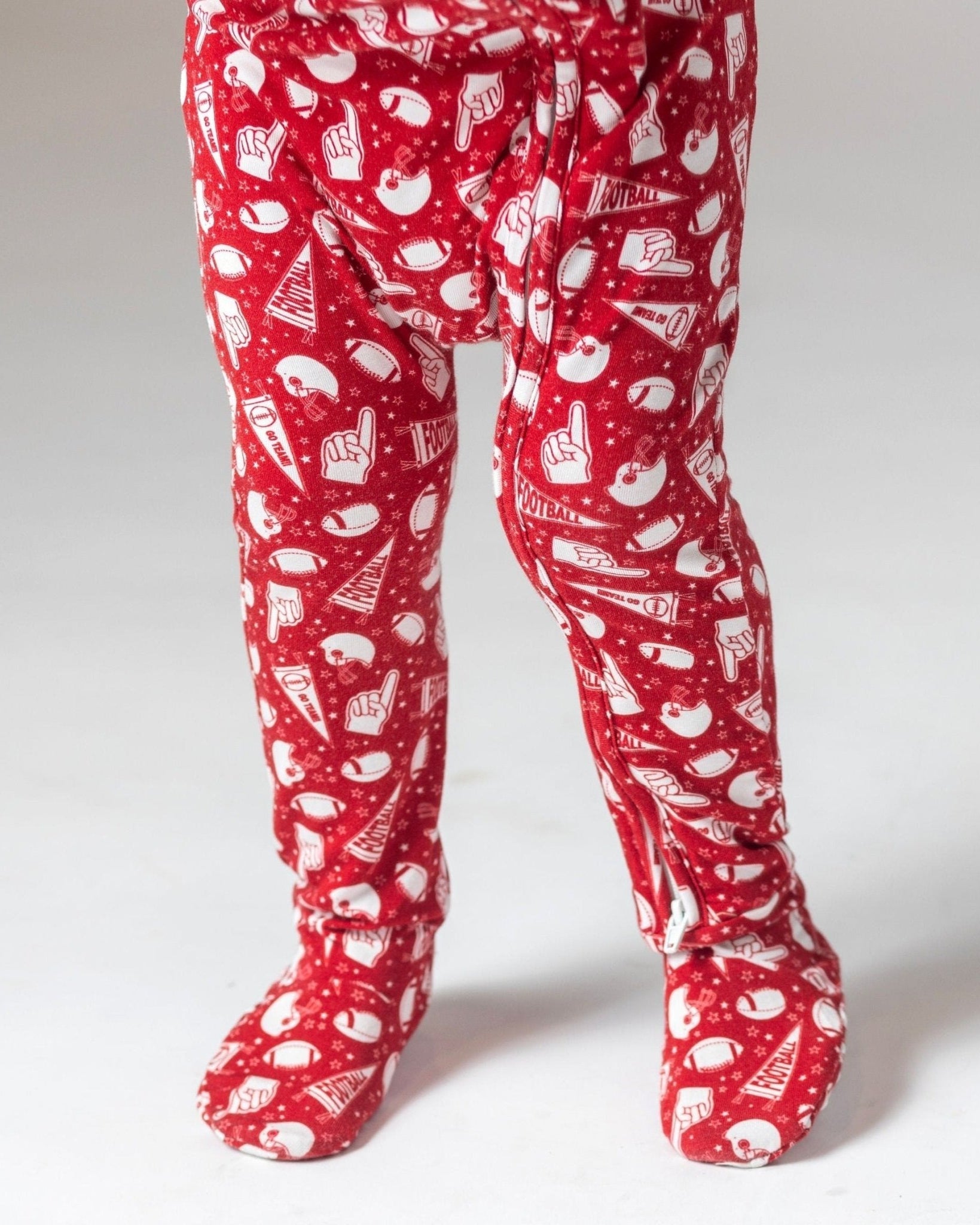 Rest easy knowing your little one will be comfortable and stylish in our infant pajamas. Made with soft and sustainable bamboo fabric, these footie pajamas feature a convenient zipper for easy diaper changes. With a football-inspired design, your little fan will be ready for a good night's sleep.