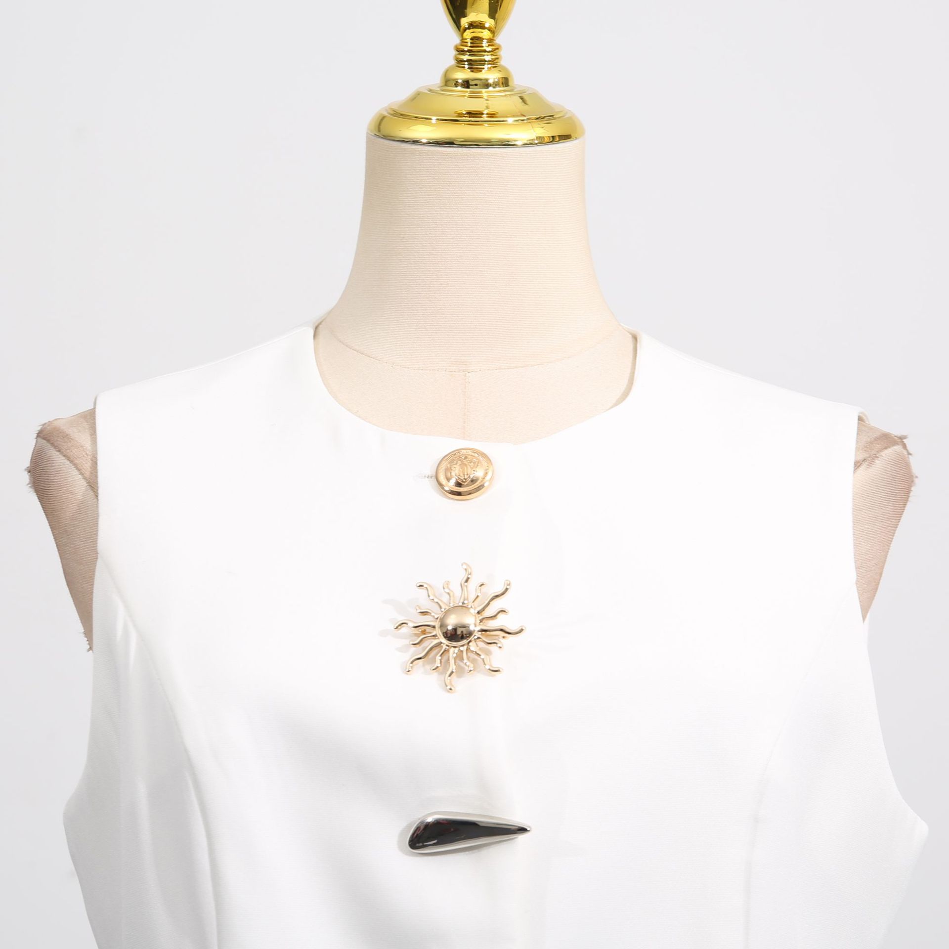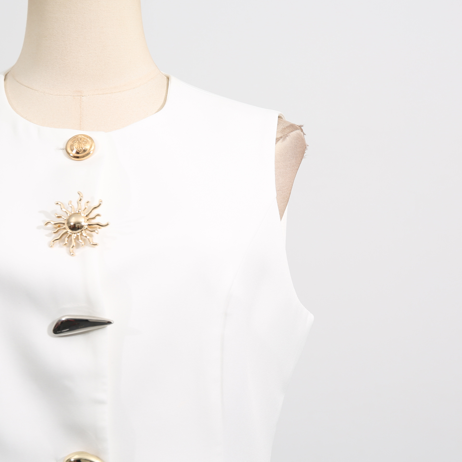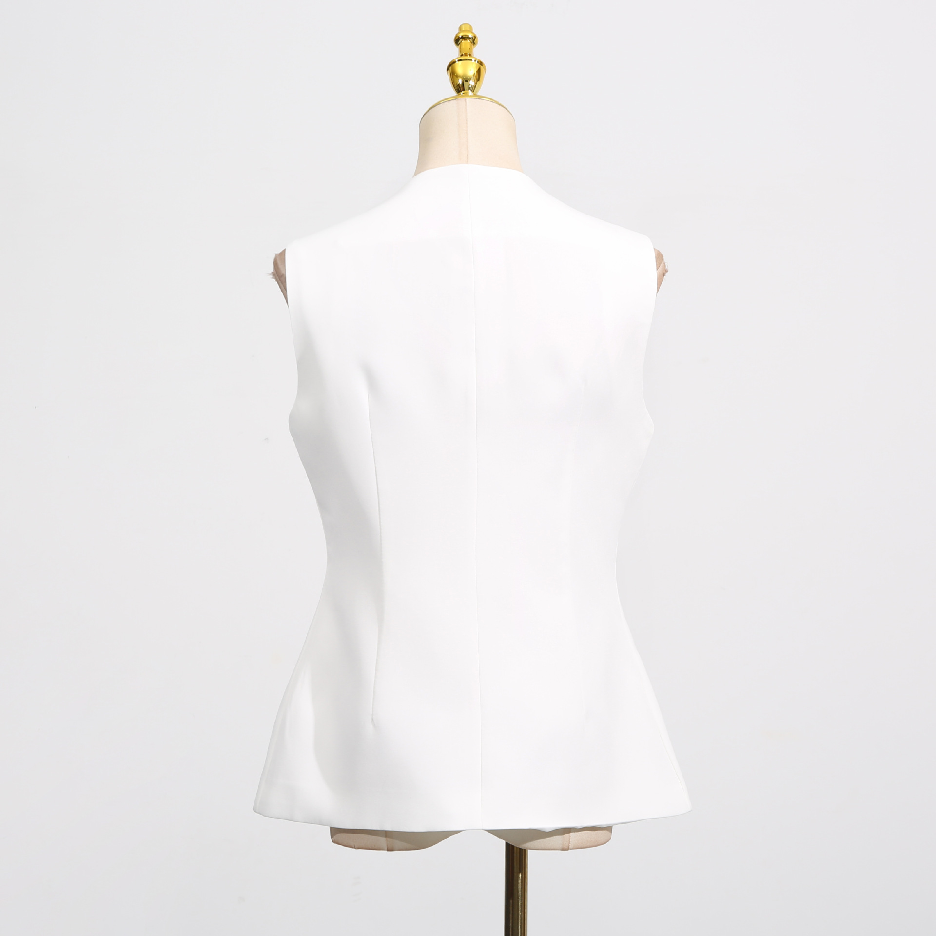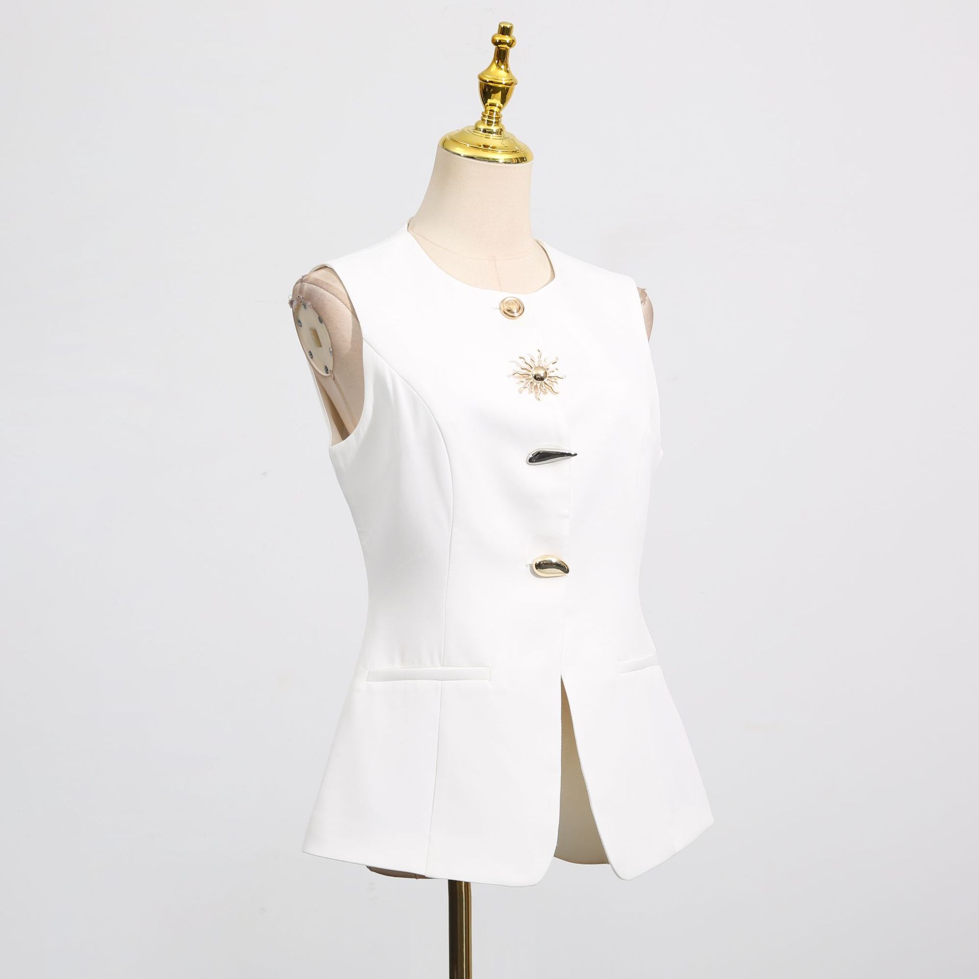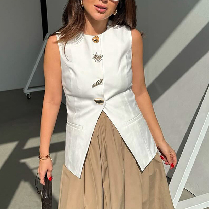 French Sleeveless Top Summer Outdoor Irregular Asymmetric Button Design Slim round Neck Vest for Women