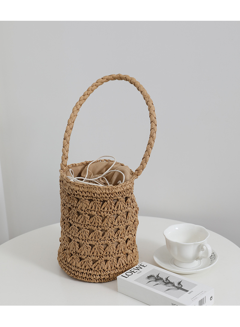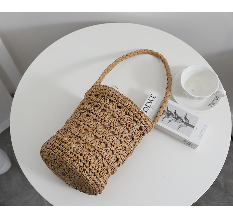 Fresh Straw Bag Summer Woven Tote All Matching Hollow Out Cutout Bucket Rattan Weave Bag Women Bag