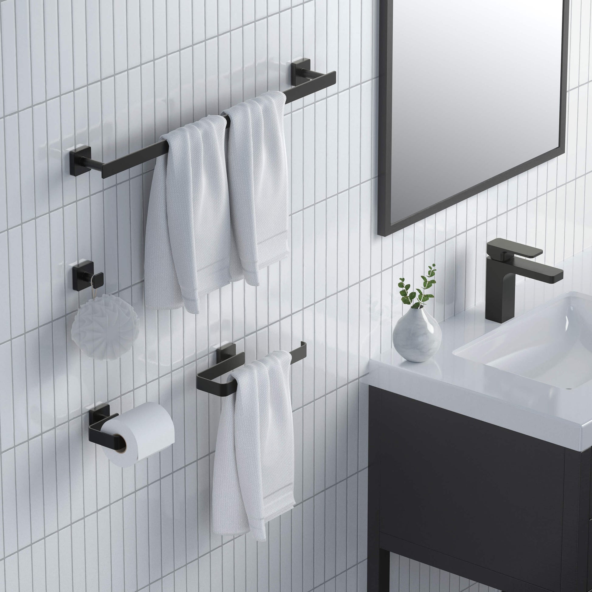 - Complete Bathroom Hardware Solution: This Blaze 4-piece hardware set offers a comprehensive solution for your bathroom, including a robe hook, a tissue holder, a towel holder, and a towel bar. With all these essential pieces in one set, you can conveniently organize your towels, tissues, and robes, ensuring a clutter-free and well-organized bathroom space.