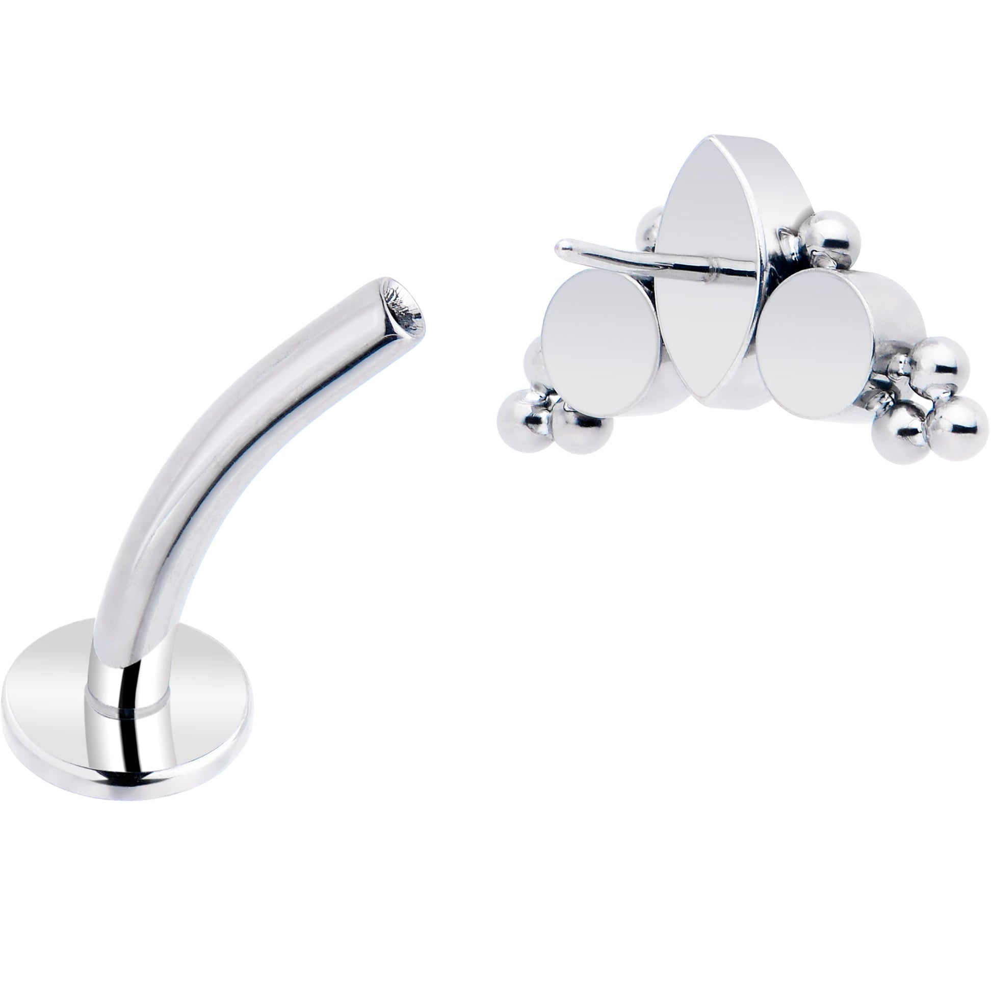Get triple the style with this 14 gauge floating navel ring. This hypoallergenic belly ring is made with implant grade titanium and the curved post features a convex disc end. The top end features a trio of color gems with two round gems set around and oval one and embellished with raised detailing. It also features a threadless design that makes for maximum comfort on insertion and removal. You'll be feeling three times as lovely with this elegantly styled belly piercing jewelry.