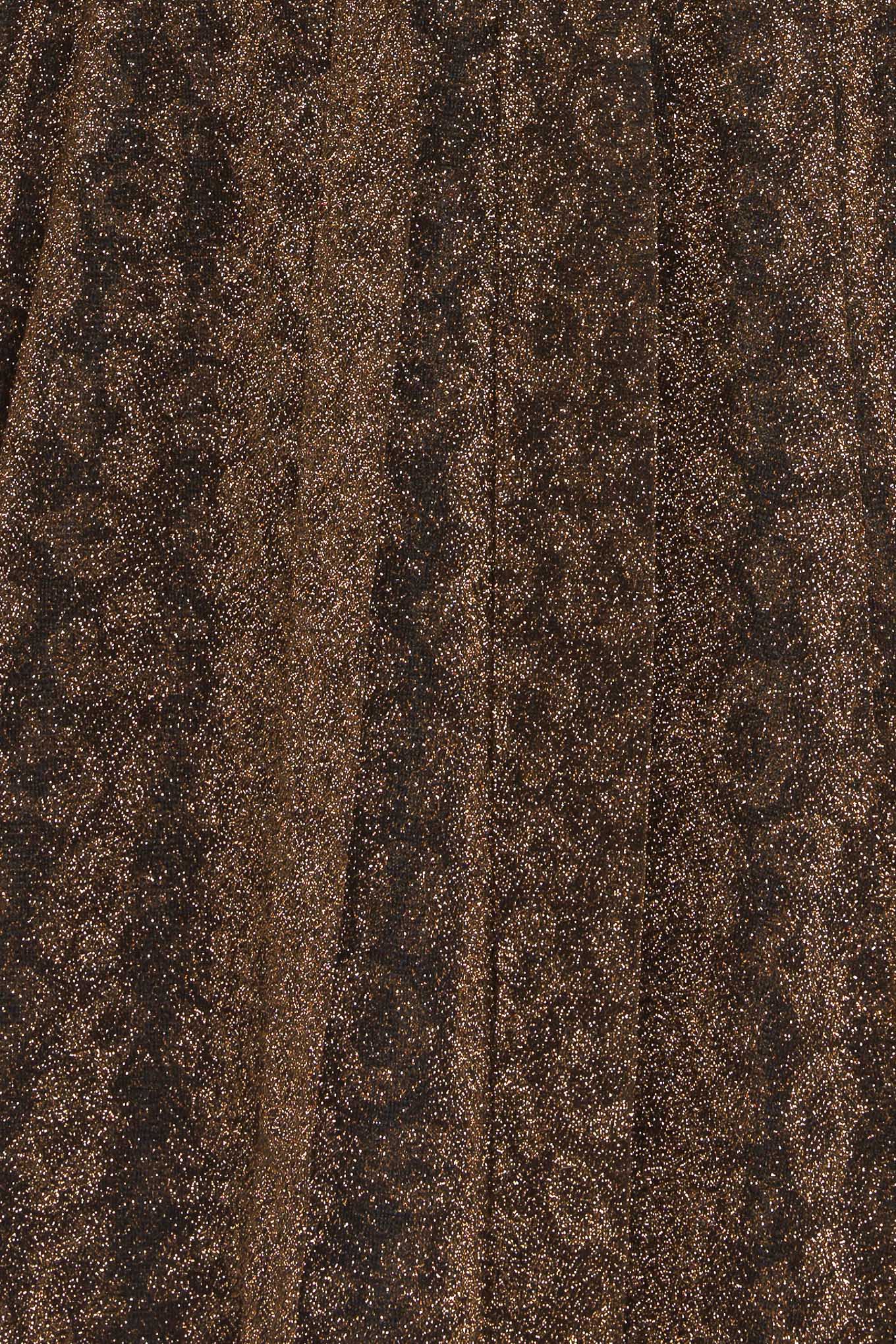 A metallic threaded woven midi dress featuring wide neckline, long blouson sleeve, self sash tie and back zipper closure
