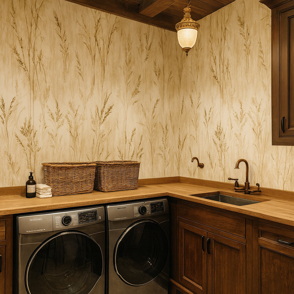 Channel windswept prairies with Golden Swayfield, a graceful vertical design of tall meadow grasses painted in gentle gold and wheat tones over a neutral base. This painterly pattern has subtle movement and organic rhythm, evoking dried flora swaying in breeze. Ideal for modern rustic living rooms, nature-inspired hallways, or country cottage retreats, it brings grounded warmth and texture.