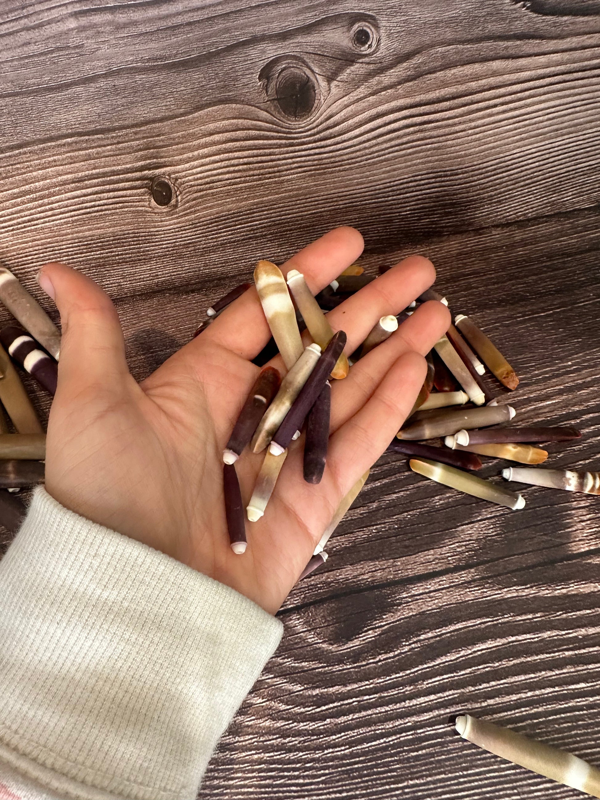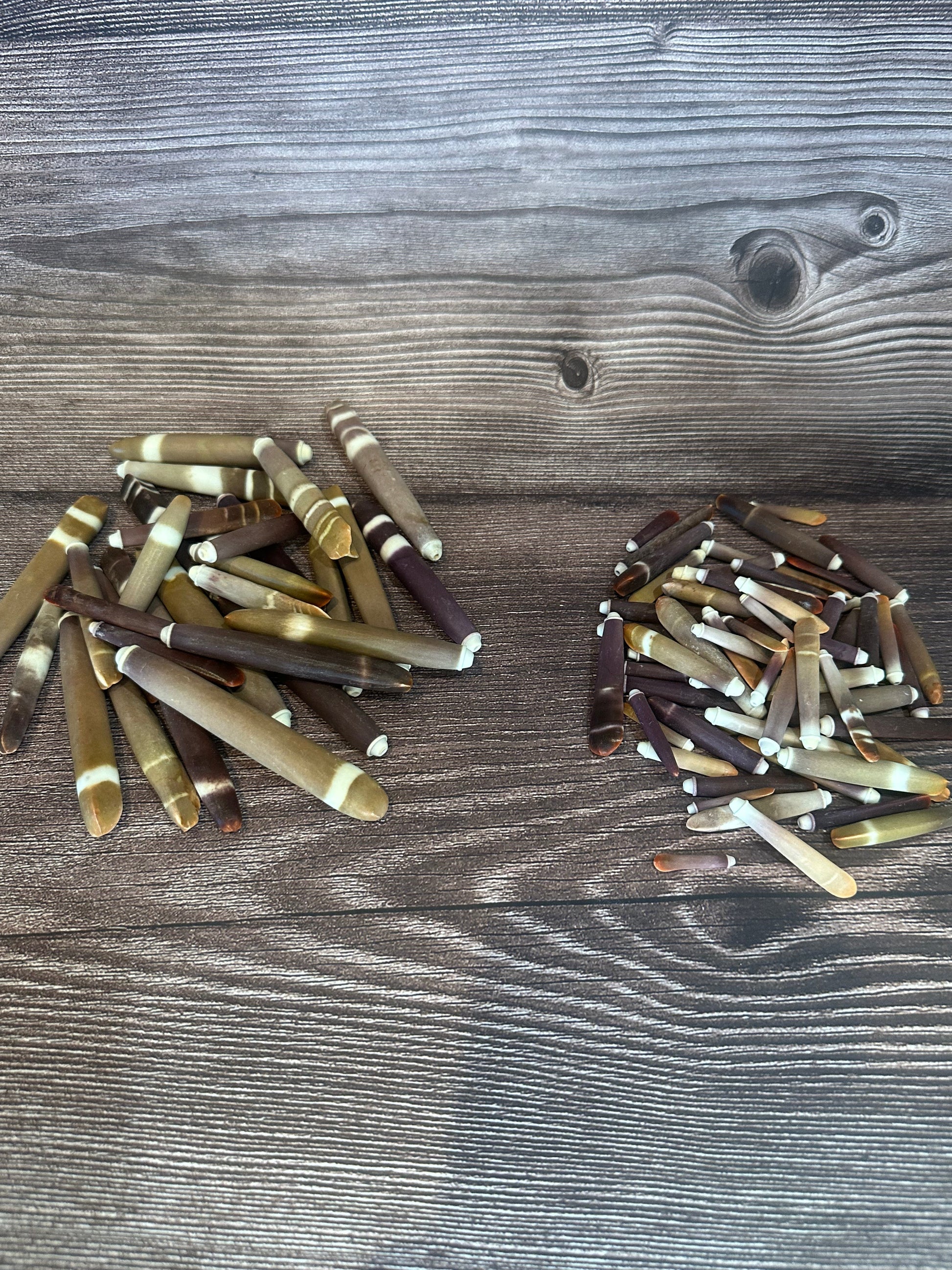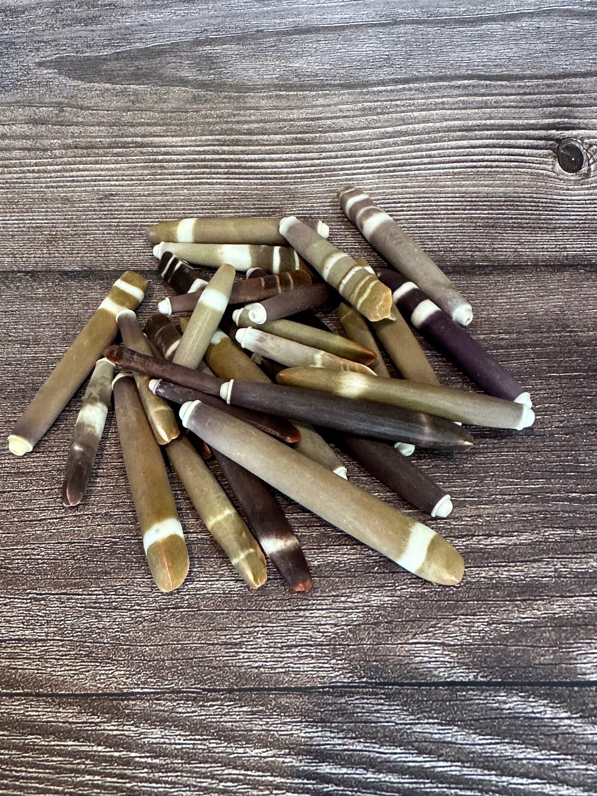 Elevate your coastal and sea-inspired DIY projects with these unique Pencil Sea Urchin Spines. Each spine boasts a variety of natural colors, including rust, white, dark wine, and olive, offering endless possibilities for crafting and decoration. Their lightweight and versatile nature makes them ideal for jewelry, wind chimes, ornaments, and other creative projects. Add a distinctive touch to your home decor or crafts with these remarkable natural treasures.