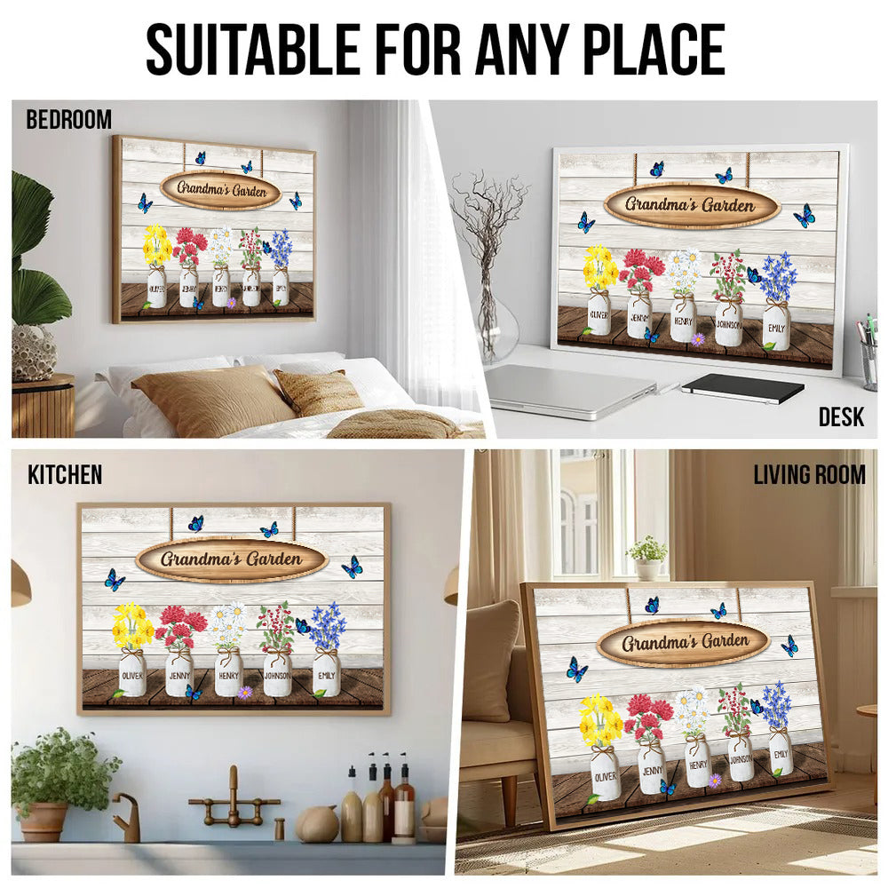 Grandma‘s Garden Watercolor Birth Month Flowers - Personalized Poster/Canvas - Gift for Grandma, Mom