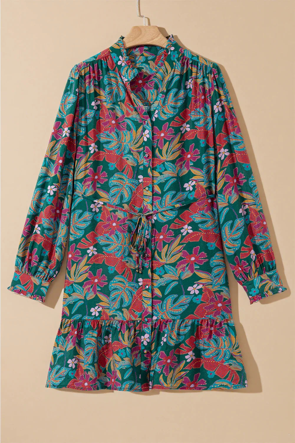 - Ruffled hem adds femininity to this boho-chic piece, perfect for casual or special occasions.