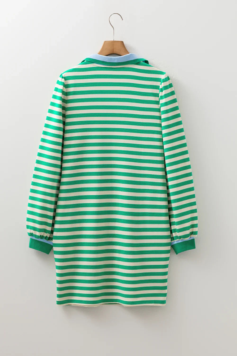 Green Pop of Color V Neck Striped Long Sleeve Mini Dress