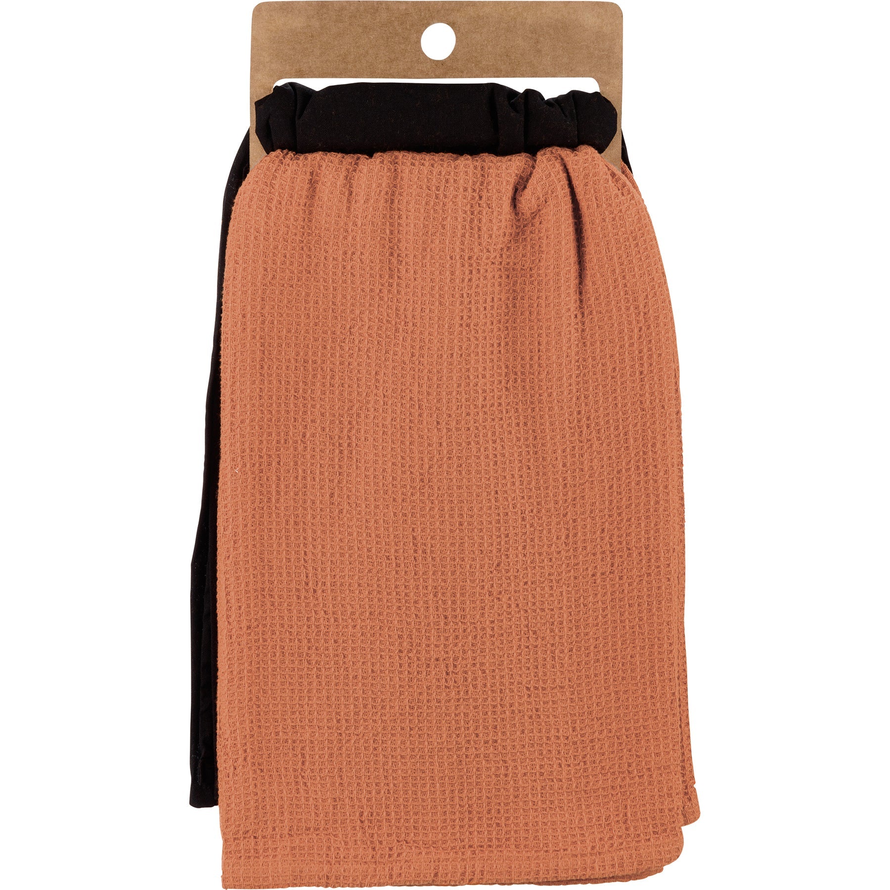 A set of two coordinating cotton kitchen towels. Towel one features a stitched art panel with "Grow With The Flow" sentiment and watercolor plant designs. Towel two features a woven clay pattern design. Our Grow With The Flow kitchen towel set is machine-washable. This house plant home decor makes a great addition to any space. Towel is packaged on a cardboard hanger with a hole to easily hang on rack.