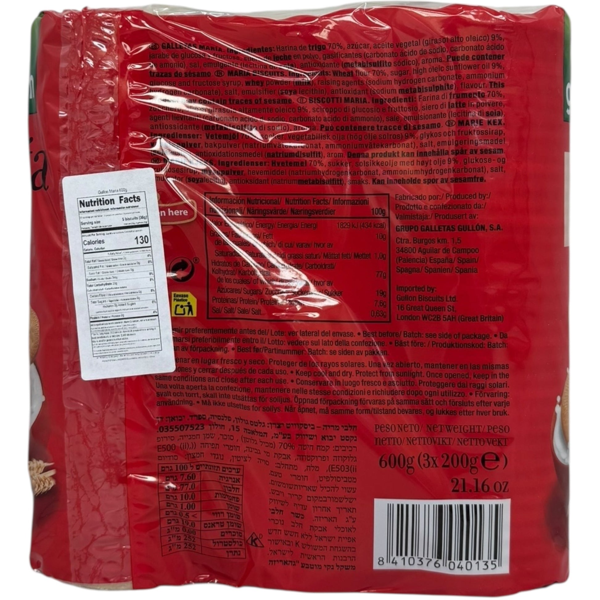 - High-Quality Ingredients: Made with wholesome ingredients, Gullon Maria Biscuits provide a satisfying crunch without compromising on taste.