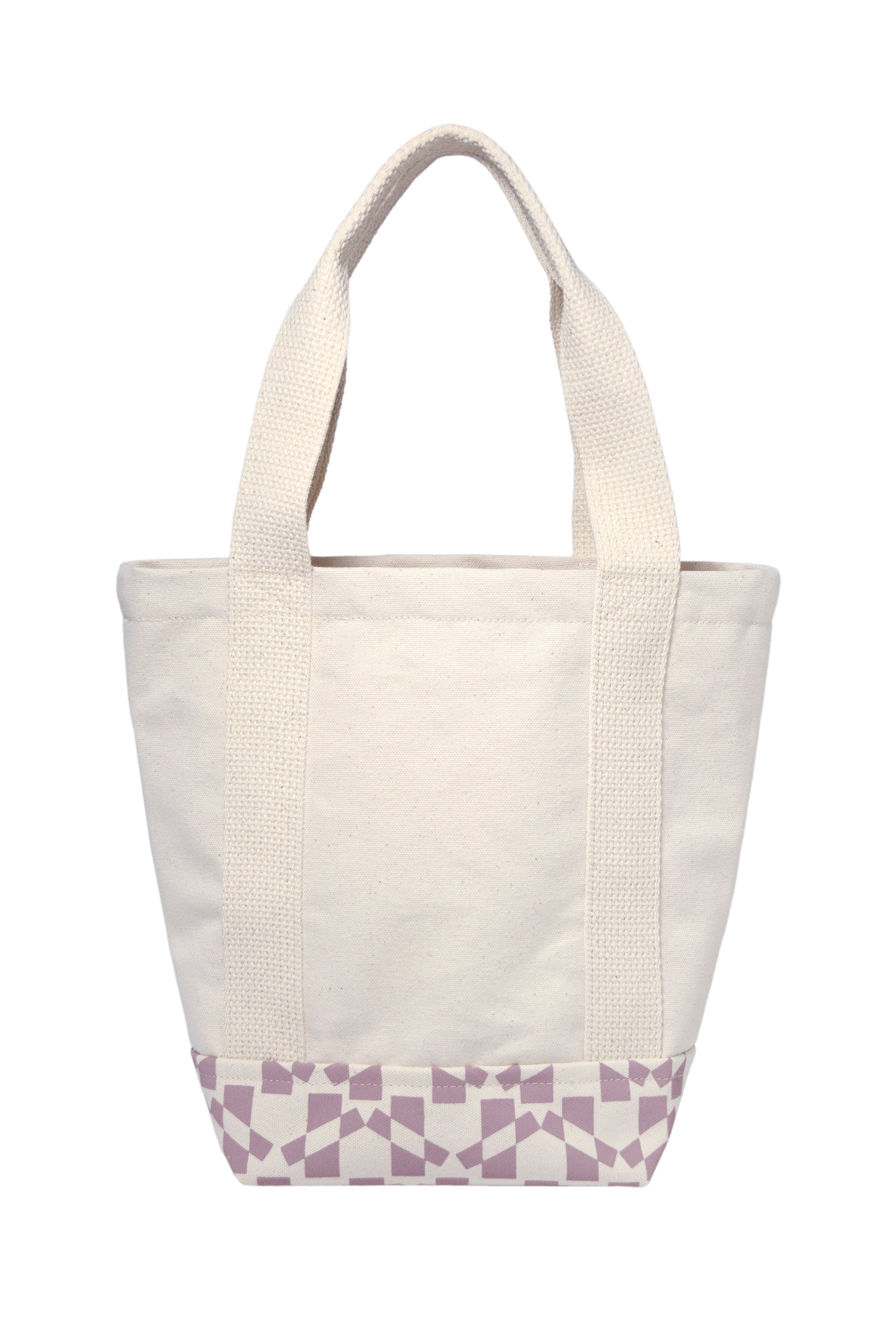 Sized at 12.5" wide by 11" tall with a 6" gusset and a 7.5" handle drop, this mini tote bag fits just right—never bulky, always ready. Made from 100% cotton canvas, it features a hand painted dot pattern that's screenprinted in coral.