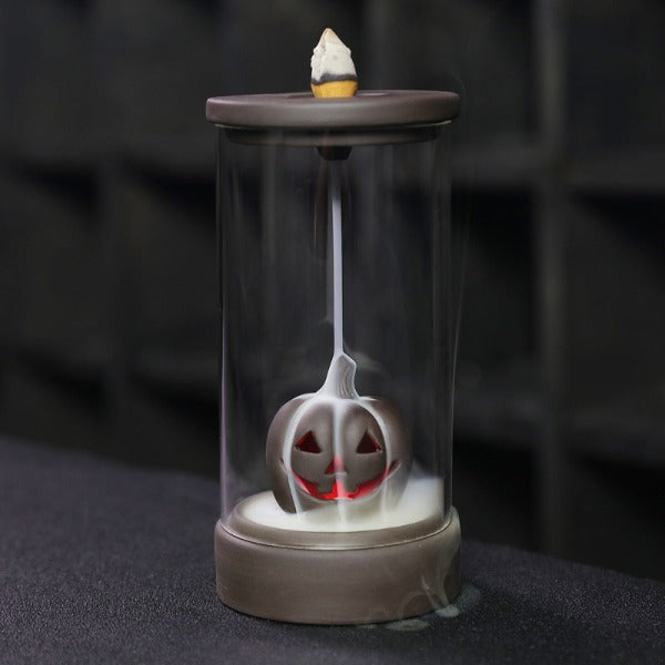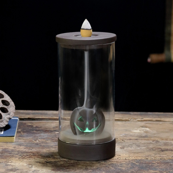 Halloween Pumpkin Color Changing Windproof Backflow Incense Burner With LED Light