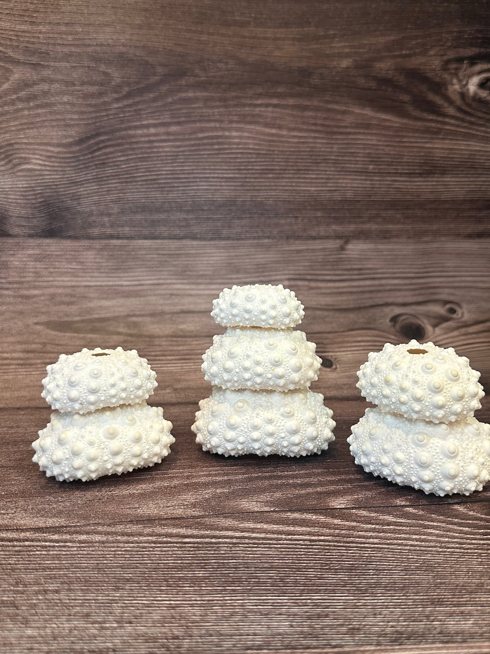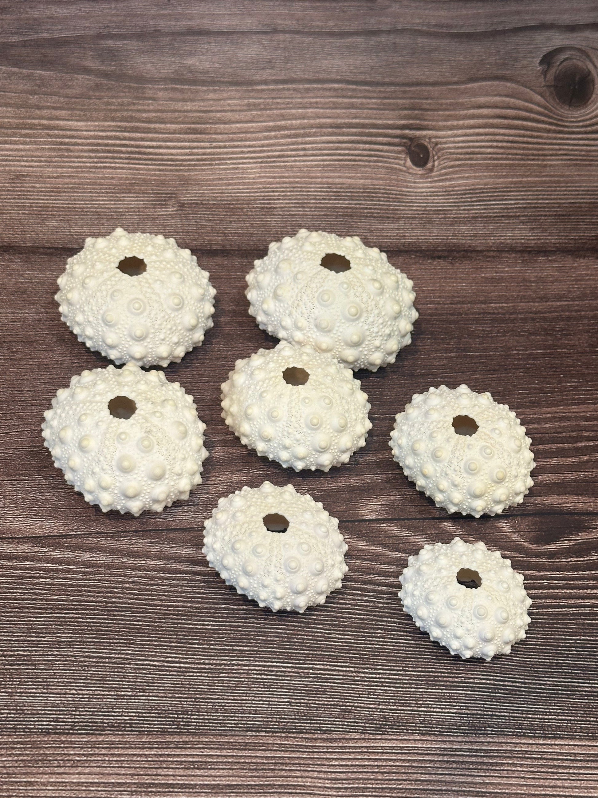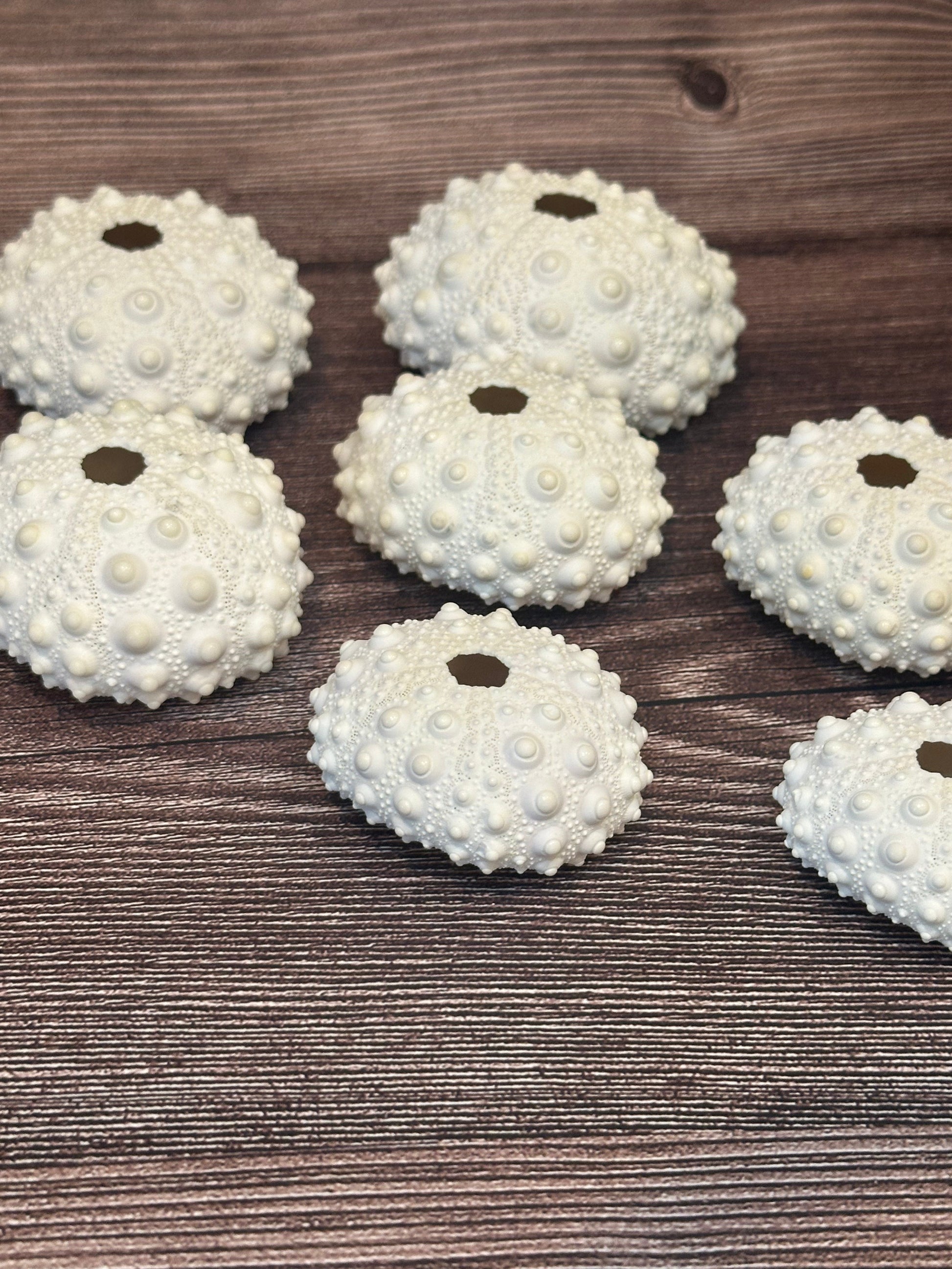 Enhance your décor or crafting projects with these authentic Hawaiian Slate Pencil Urchins! While not pure white, each urchin showcases natural variations in color and texture due to age, making them perfect for adding a distinctive coastal charm. Available in three size brackets: 1-2", 2-2.5", and 2.5"+, these unique marine pieces are ideal for beach-themed décor, crafting, or as a collector's item.