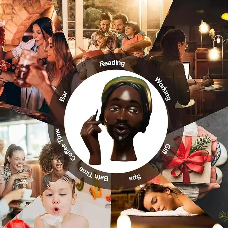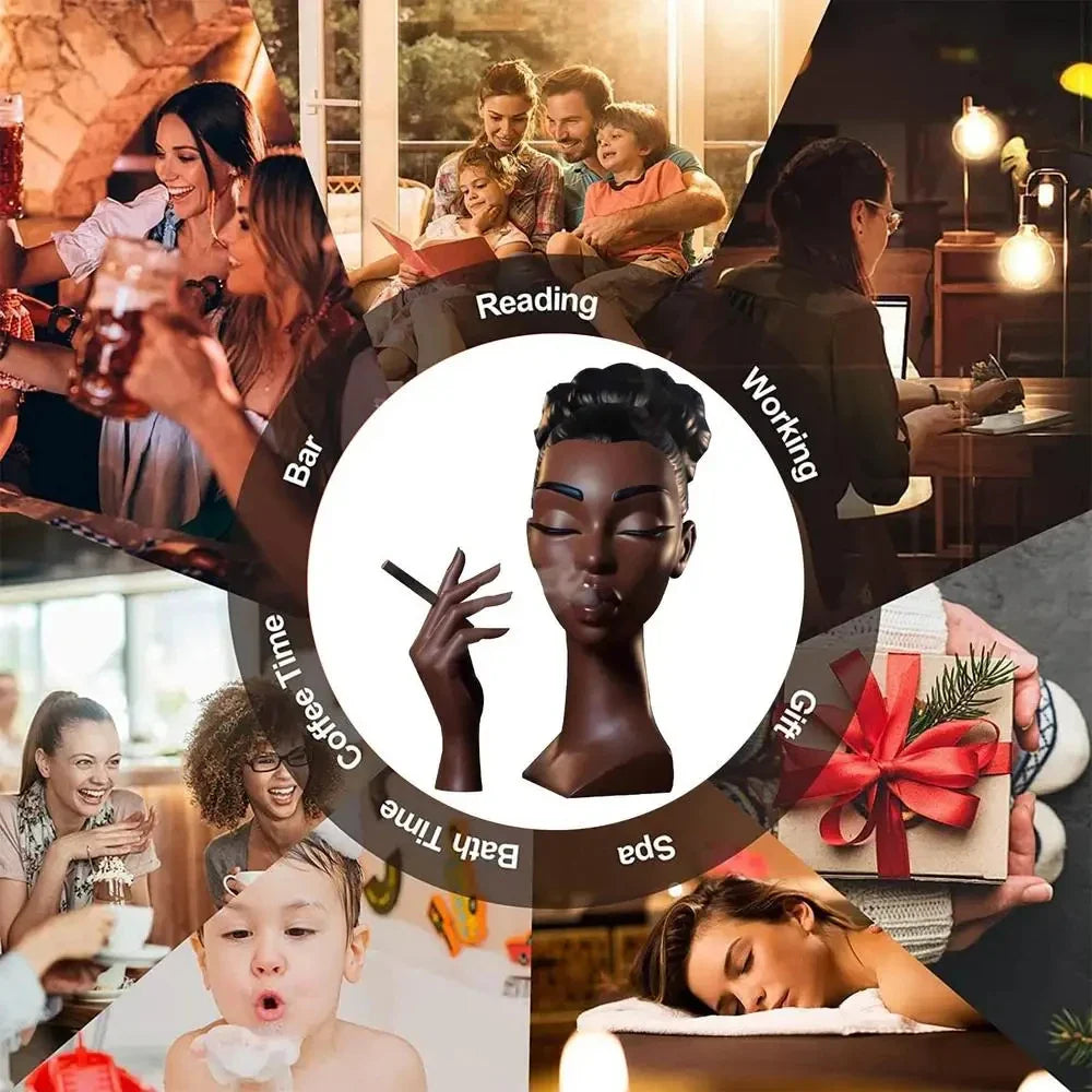 - Expressive and Elegant Design: The Black woman head design features sleek, pulled-back hair and a peaceful expression, exuding an aura of calmness and poise. The closed eyes and subtle smirk provide a welcoming, peaceful ambiance.