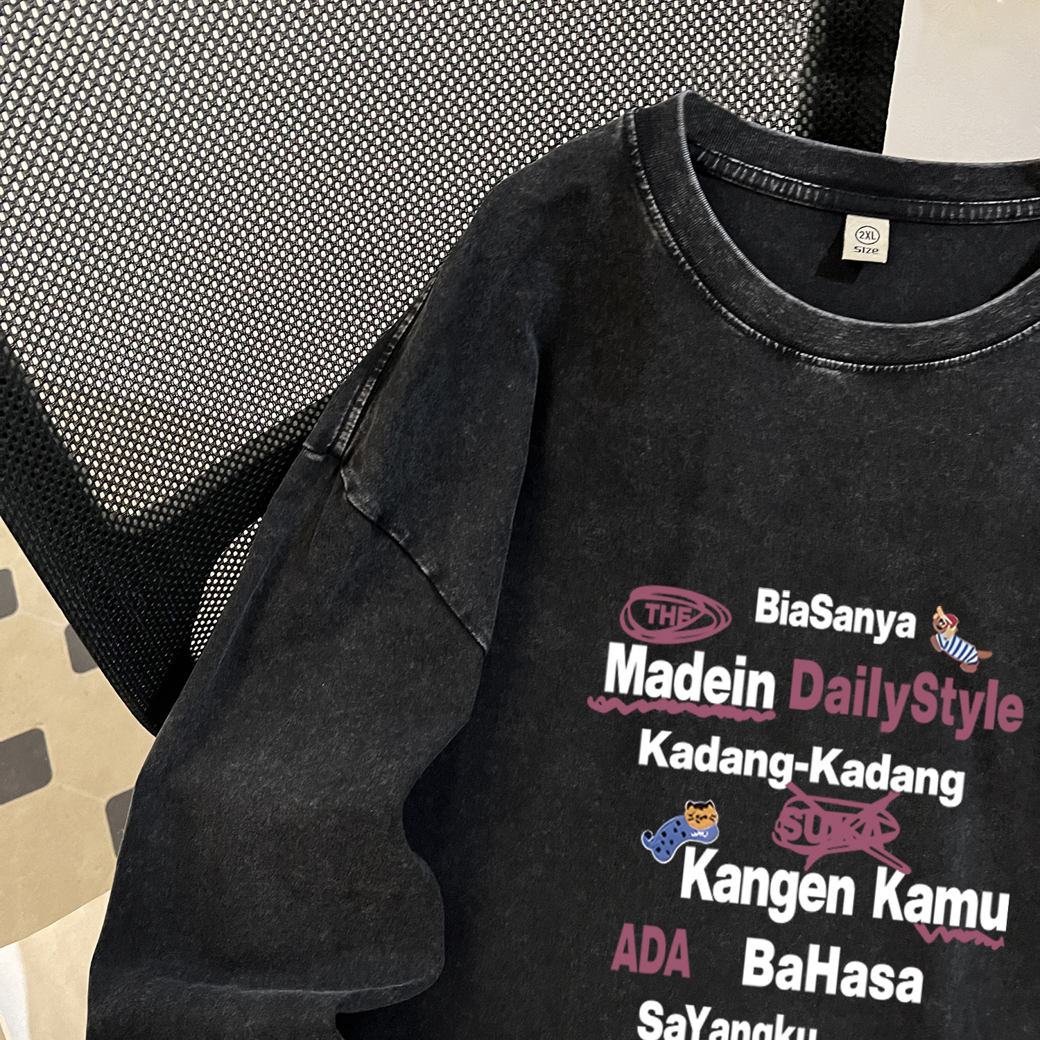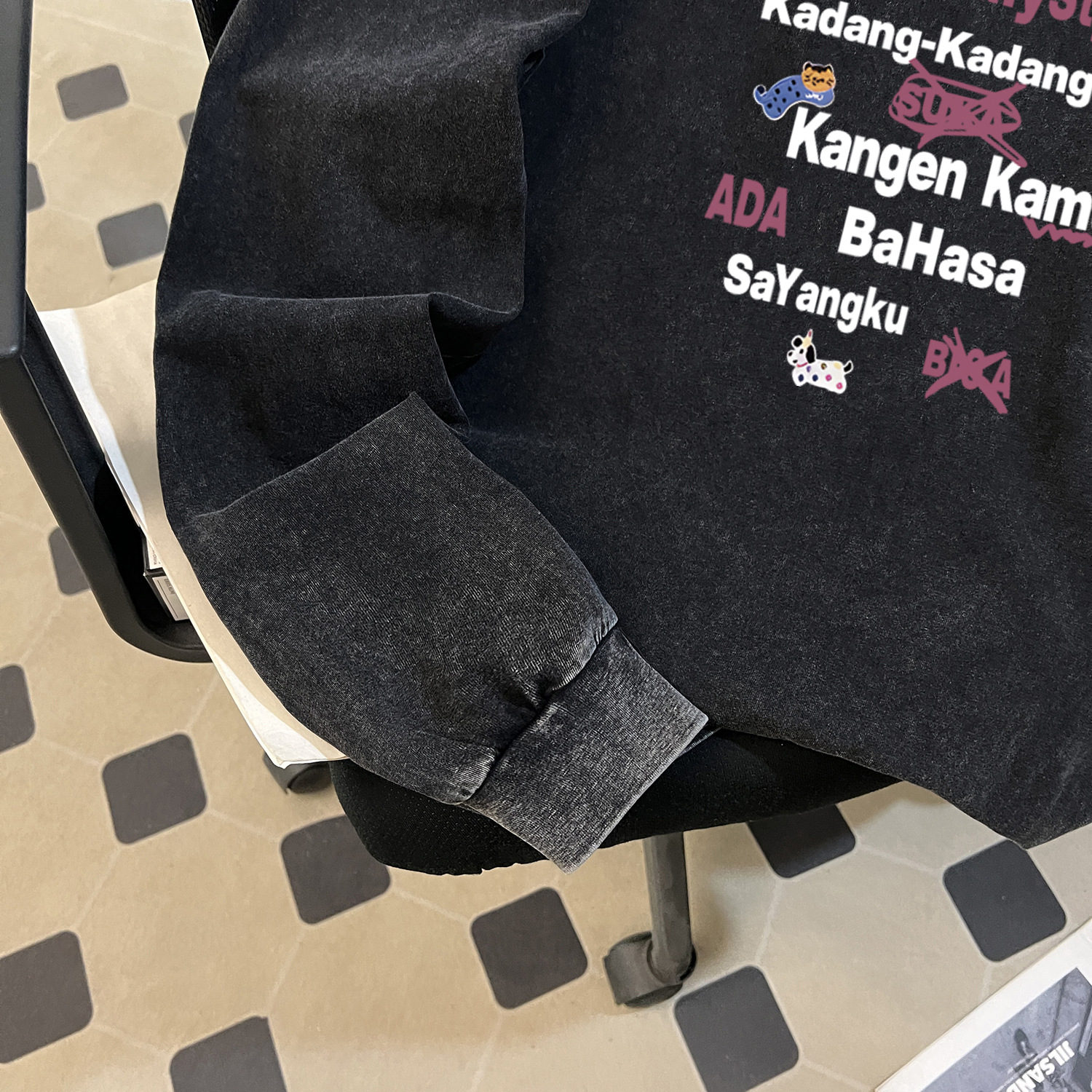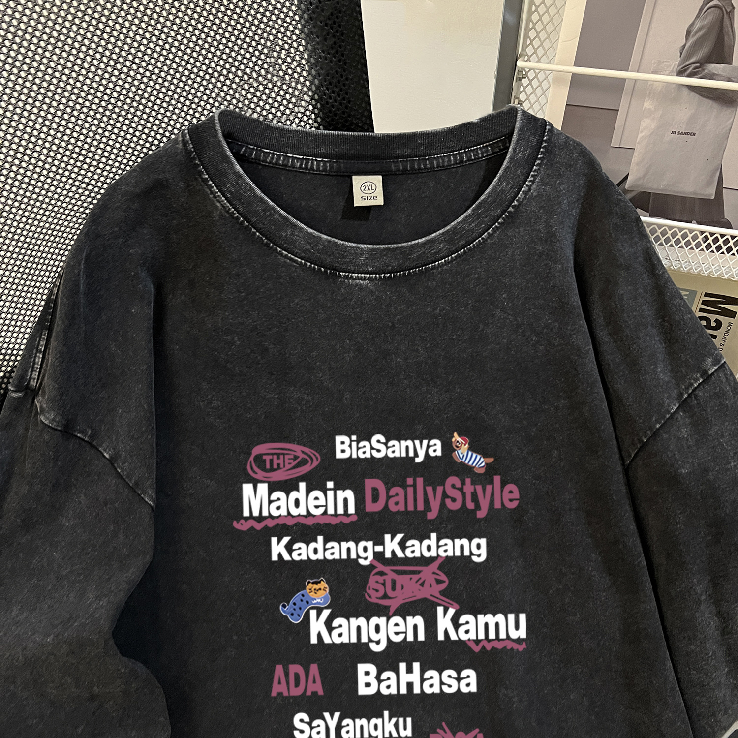 Heavy Autumn Hong Kong Trendy Brand Loose Retro Washed College Cotton round Neck Long Sleeves Top T shirt Women