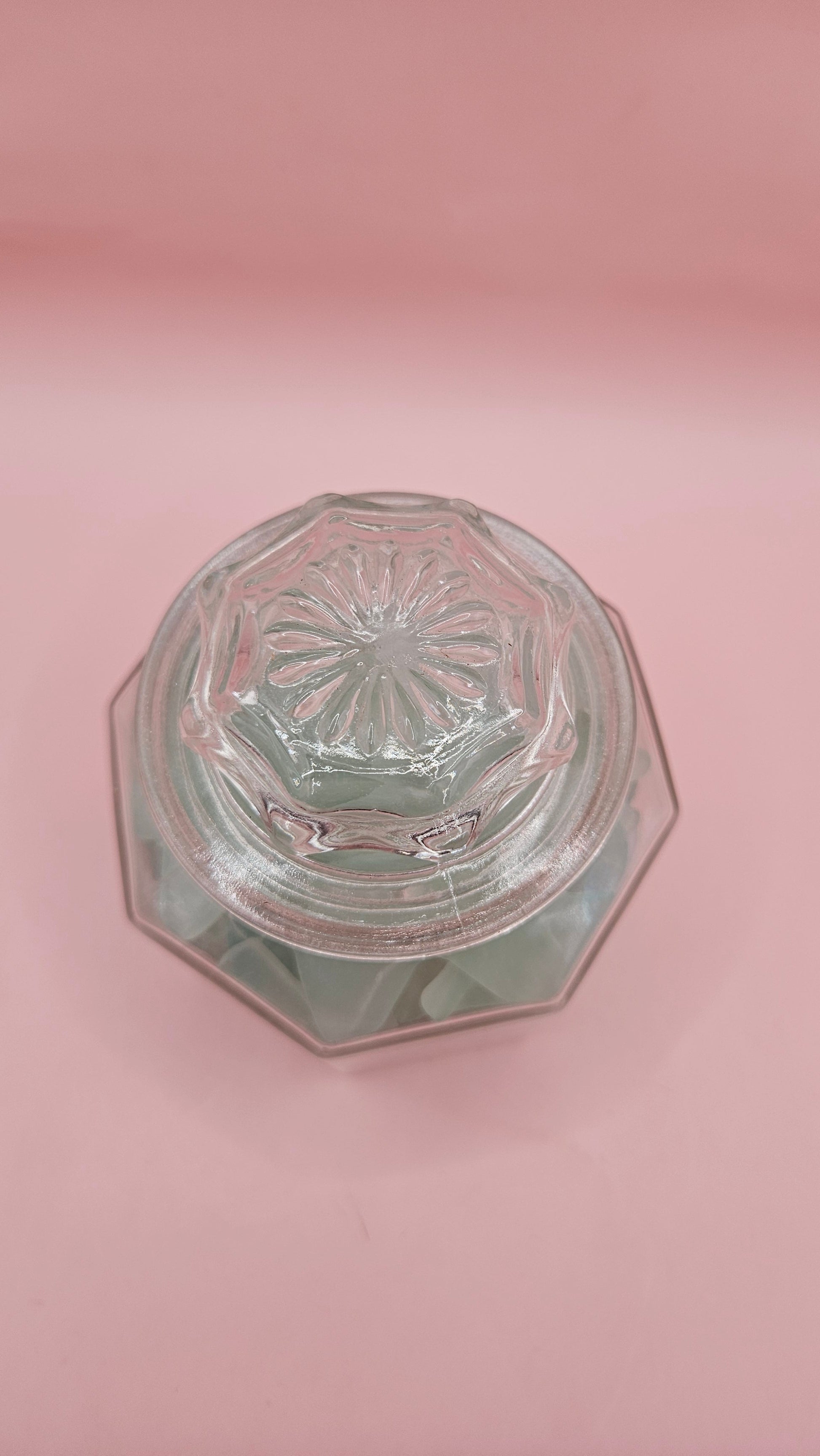 Vintage-style glass jar with faceted sides and textured lid top