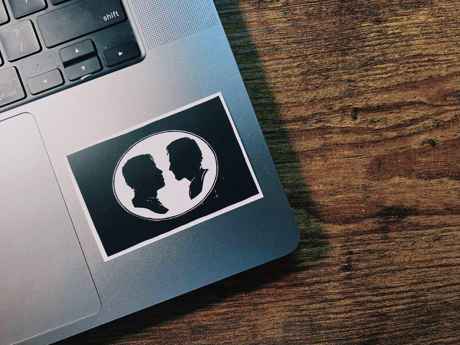 Vinyl stickers are made by using a high-quality scan of the original block-printed design.