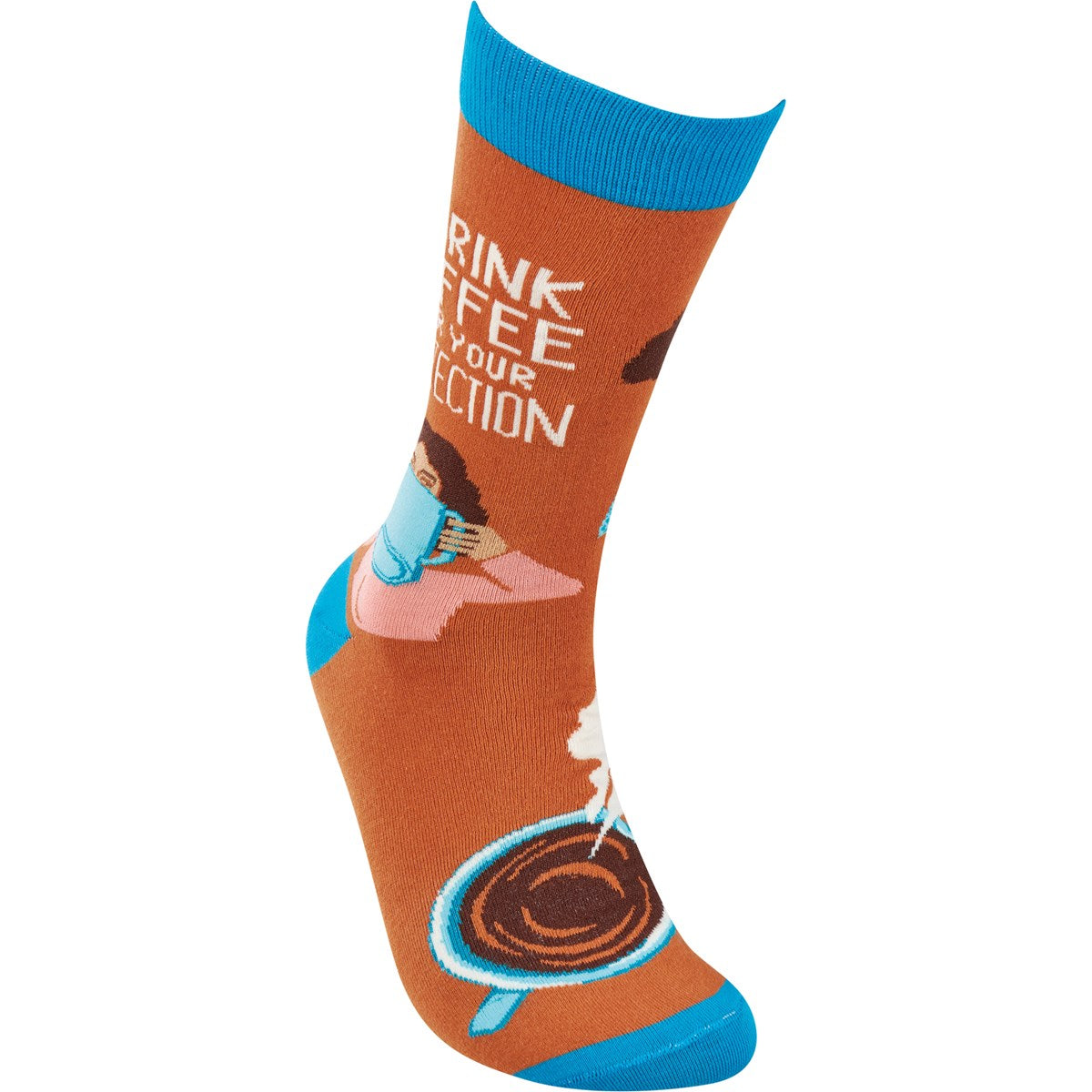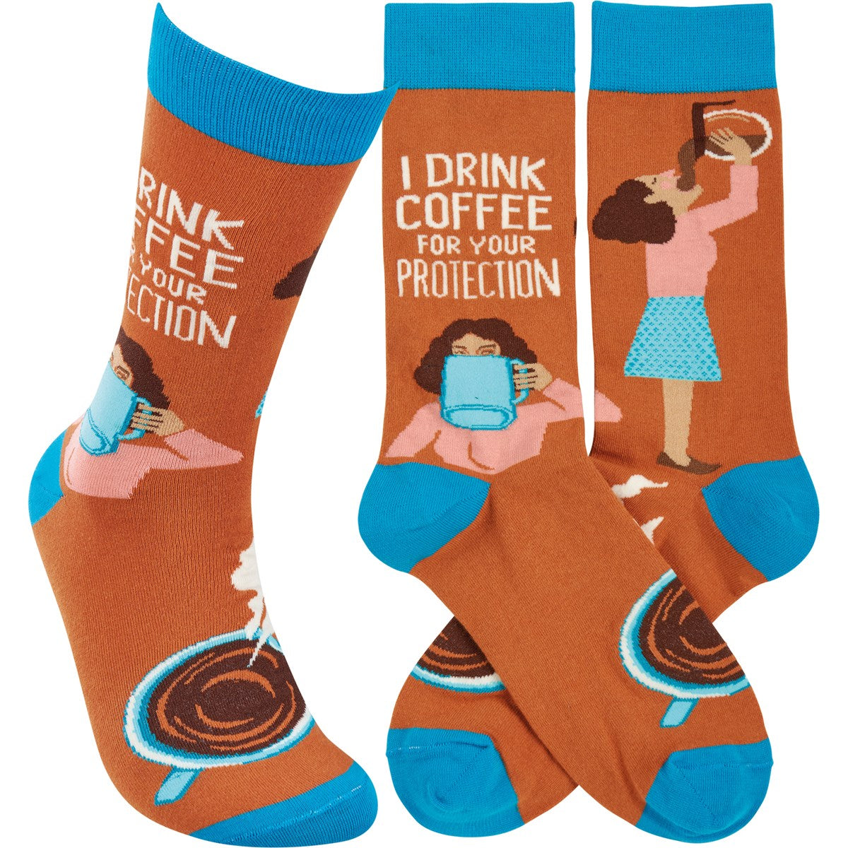 I Drink Coffee For Your Protection Funny Socks in Aqua Blue and Brown
