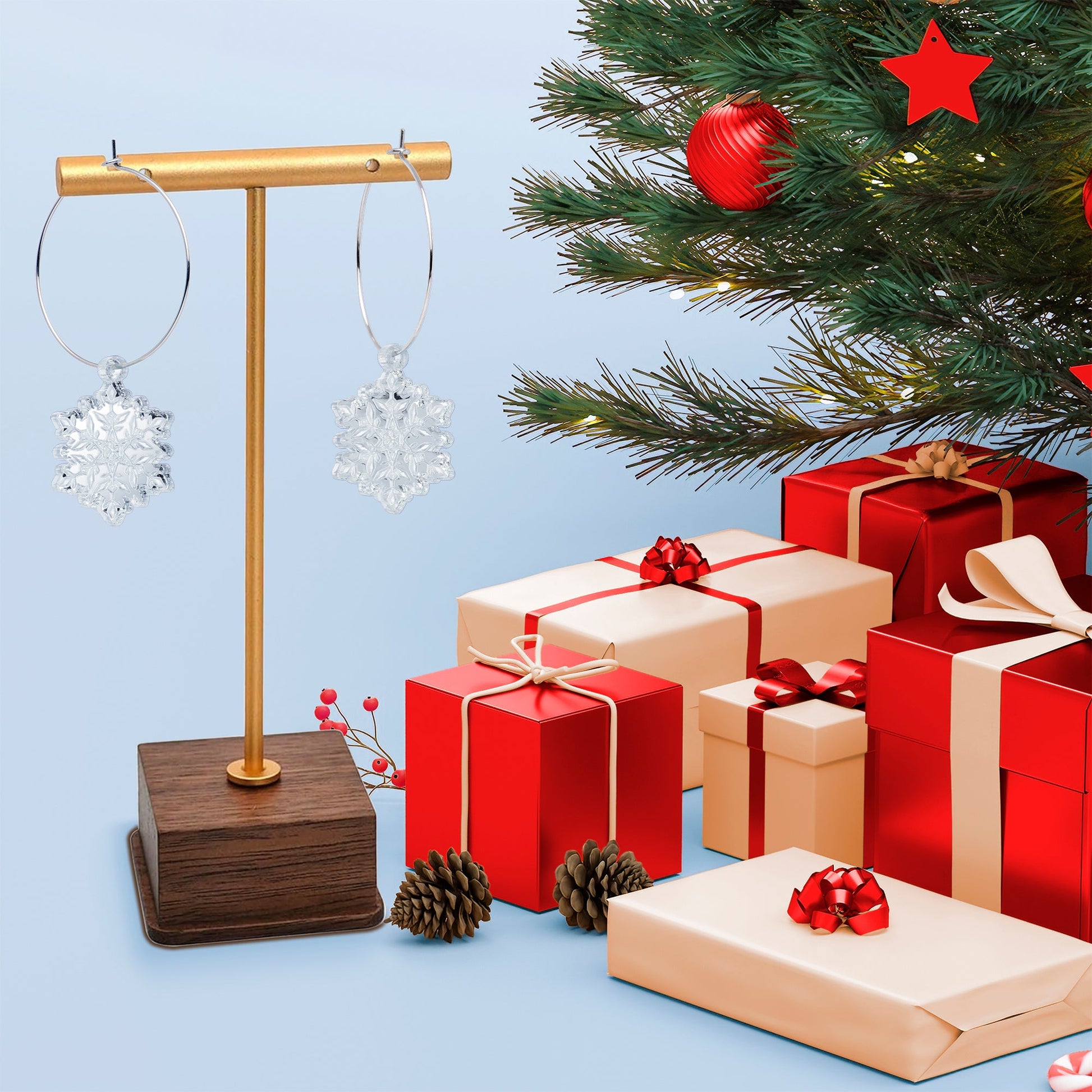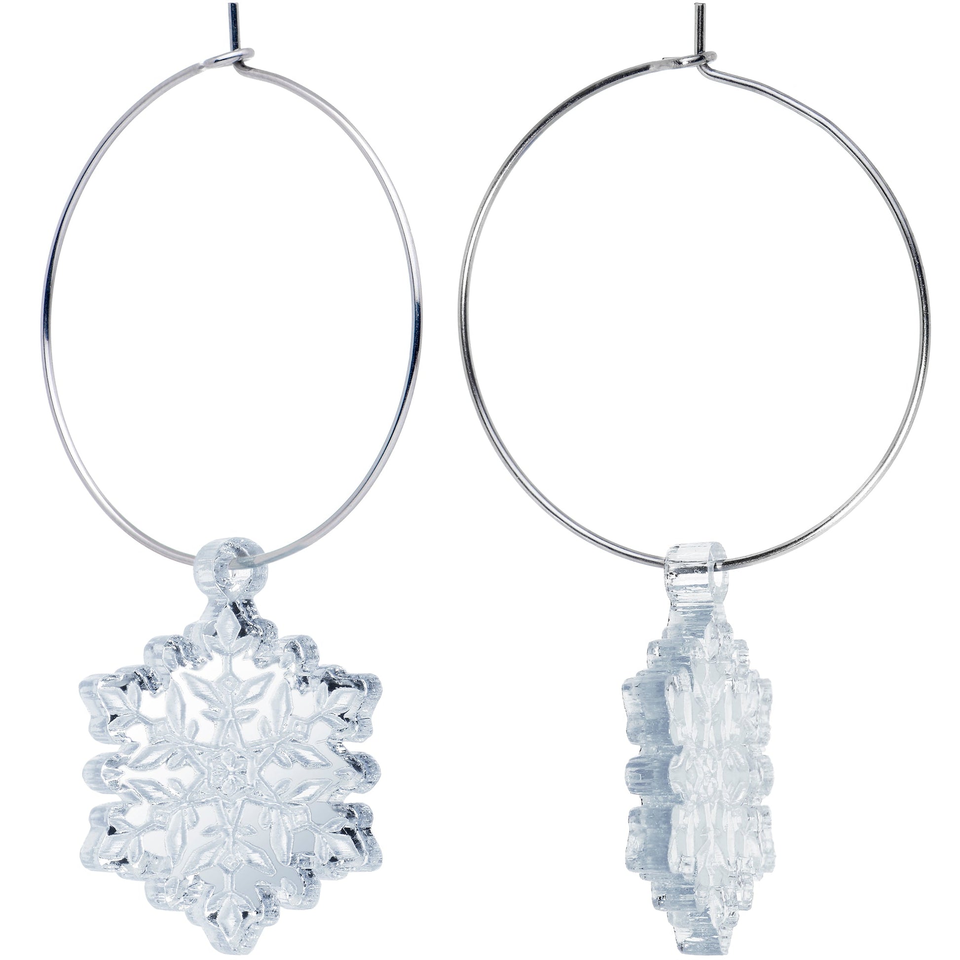 Get a look that's cooler than ice this holidays season with our clear snowflake earrings. Each stainless steel hoop earring for pierced lobes features a dangle snowflake charm made of clear acrylic with ornate detailing, as befits a unique snowflake.