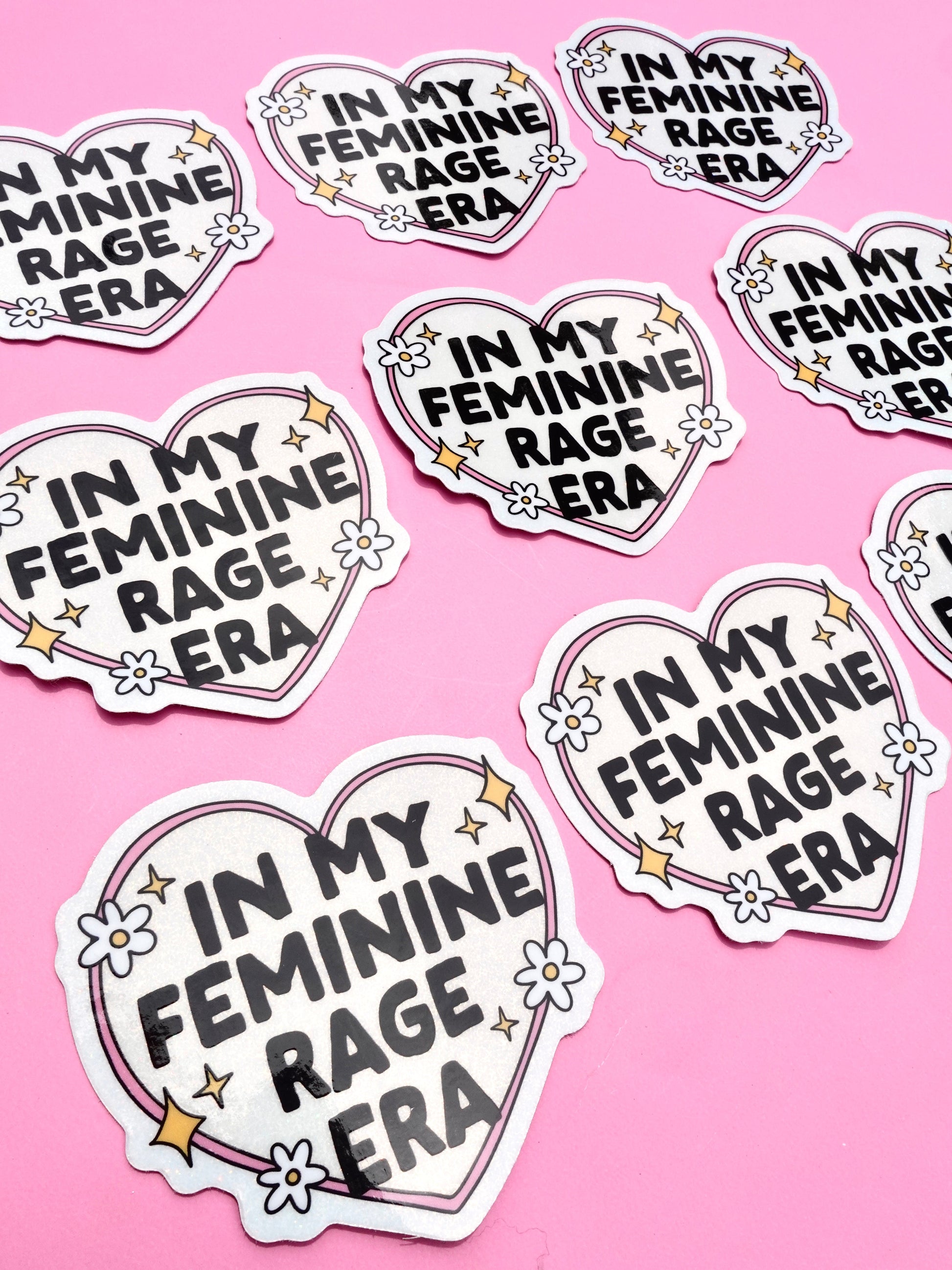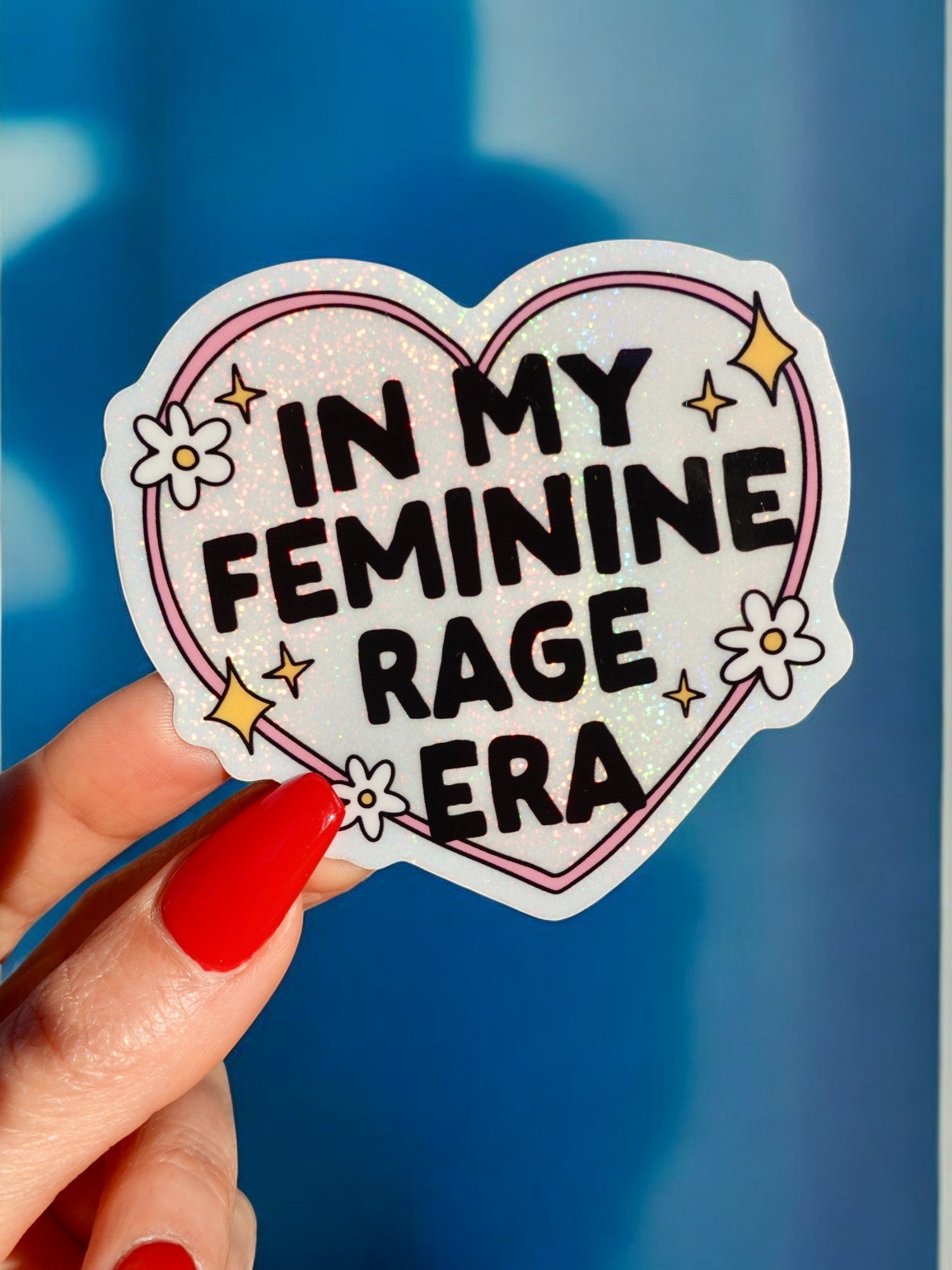 In My Feminine Rage Era Sticker – Holographic Heart Feminist Vinyl Decal