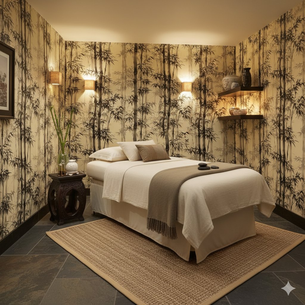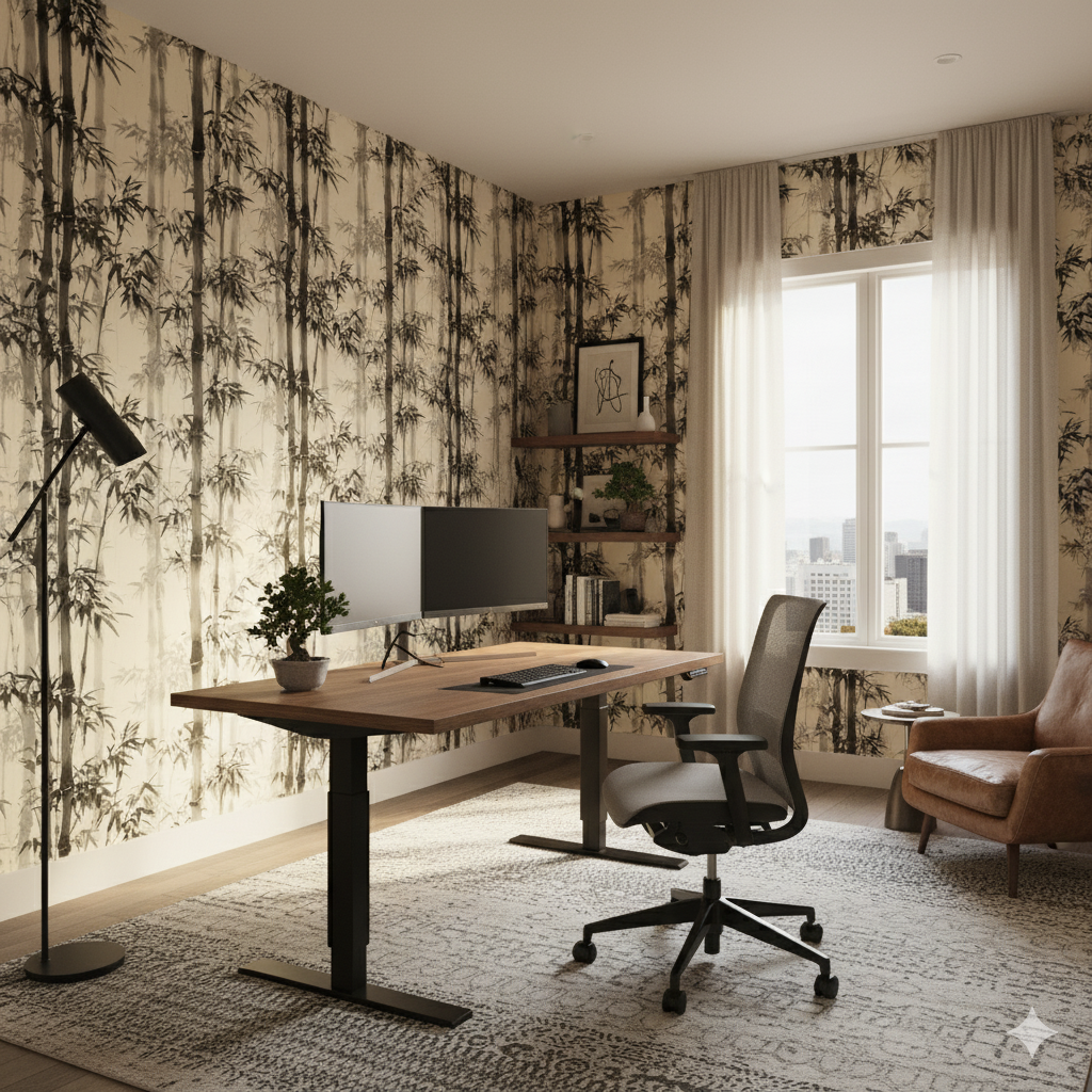 Tall bamboo stalks painted in an elegant ink-brush style rise across a soft beige backdrop, evoking a sense of Zen tranquility. The black and gray tonal layering gives depth, while the soft washes suggest mist rolling through an Asian bamboo grove. Perfect for meditation rooms, minimalist bedrooms, or spa-inspired bathrooms, this wallpaper transforms walls into serene landscapes rooted in Japanese and Chinese artistry.