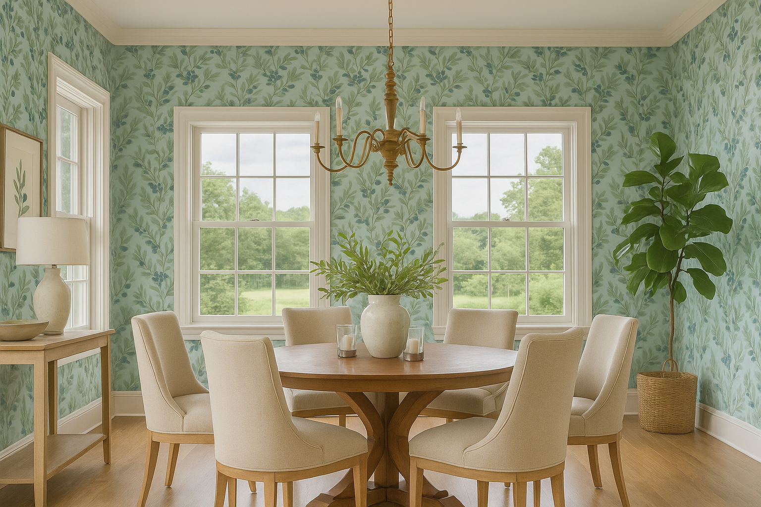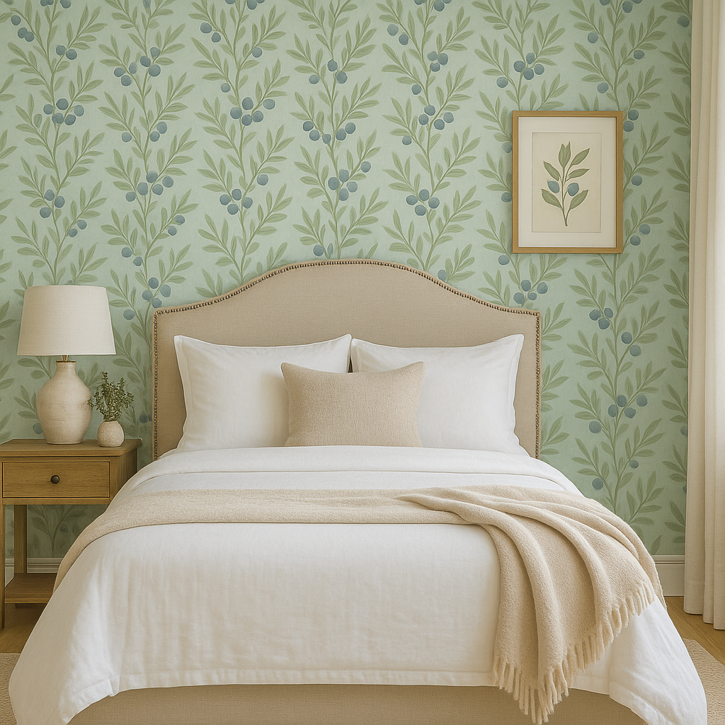 Juniper Mist Wallpaper brings subtle botanical elegance with airy sprigs of juniper and soft misty greens layered over an off-white or pale sage background. The design evokes a calm, nature-inspired feel that works perfectly in modern organic, Scandinavian, or Japandi spaces. Ideal for bedrooms, bathrooms, or serene living areas, this is a perfect match for anyone seeking soft green botanical wallpaper, minimalist floral wallpaper, modern organic wallpaper, or Scandinavian-inspired wall coverings.