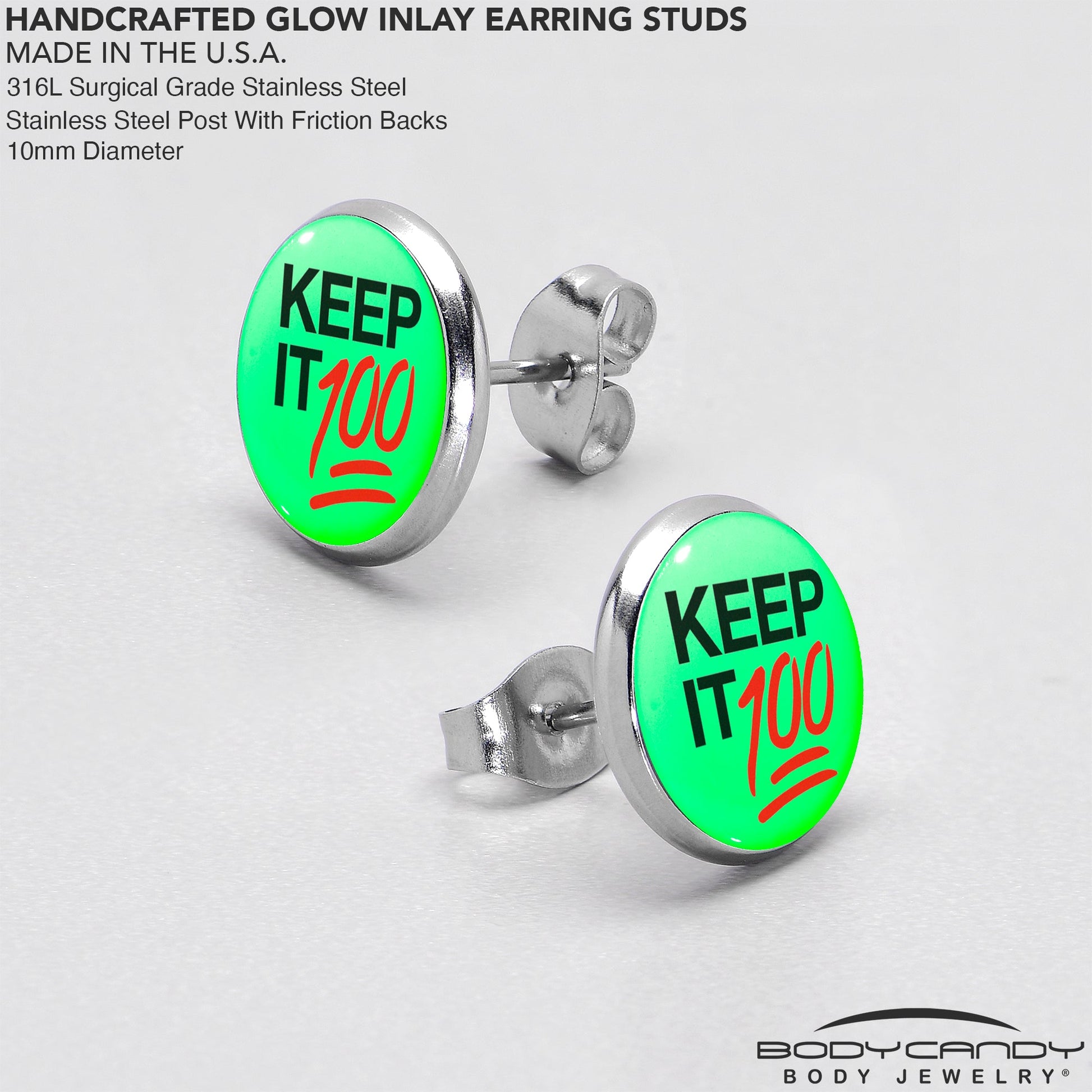Hypoallergenic jewelry for sensitive skin.Keep it 100 Glow in the Dark Stud Earrings