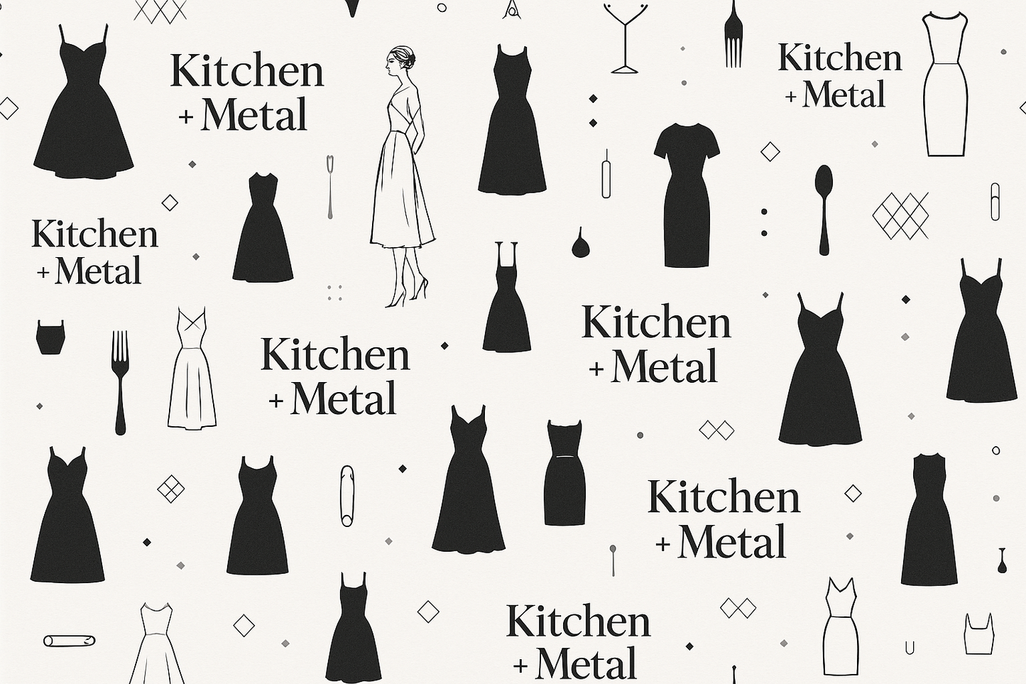 Perfect for those who appreciate the intersection of fashion and culinary arts, this design celebrates the iconic little black dress while honoring our Kitchen + Metal heritage. It's for the discerning individual who understands that sometimes the most powerful statement is made through restraint and refinement.