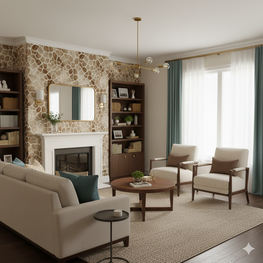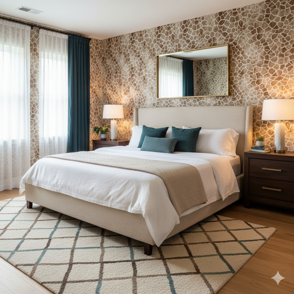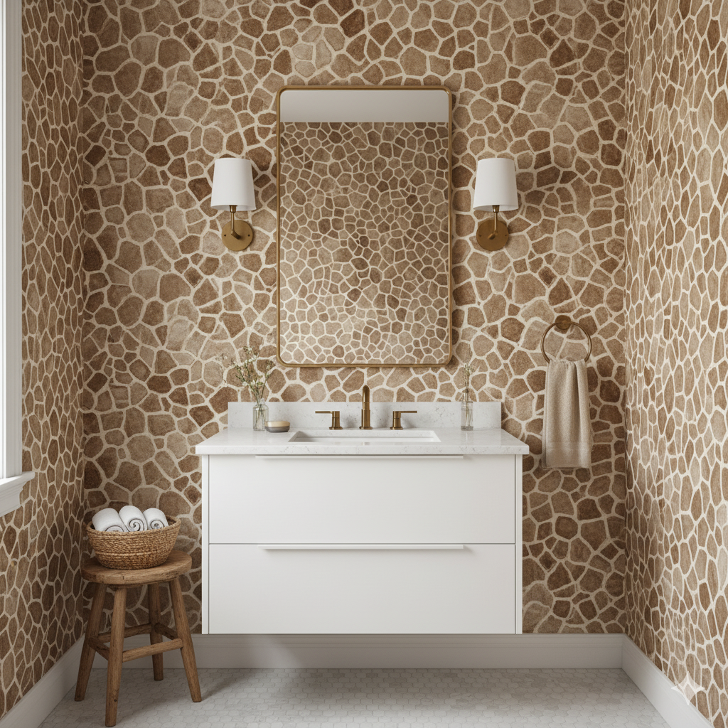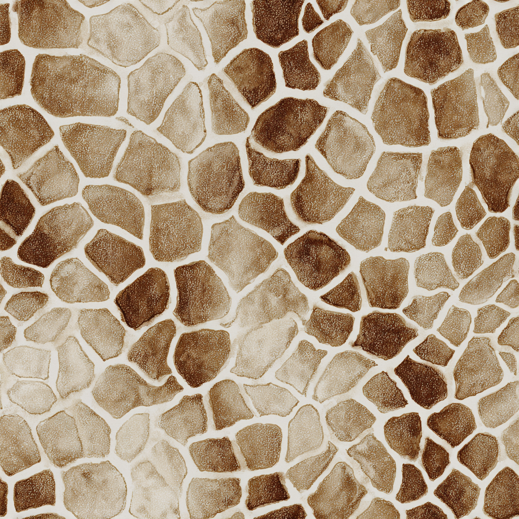 Inspired by giraffe patterns but stylized into tessellated polygons, this wallpaper bridges the organic and the geometric. The hand-rendered shapes shift in earthy gradients of chestnut, tawny beige, and warm ivory, creating a surface that feels both tactile and architectural. From a distance it reads as an elegant abstract texture; up close, the subtle irregularity gives it soul. It’s perfect for creating an earthy grounding wall in contemporary living rooms, safari-themed bedrooms, or rustic-modern dining areas. When paired with linen upholstery, wood beams, or clay ceramics, it offers an effortlessly global feel that whispers rather than shouts.
