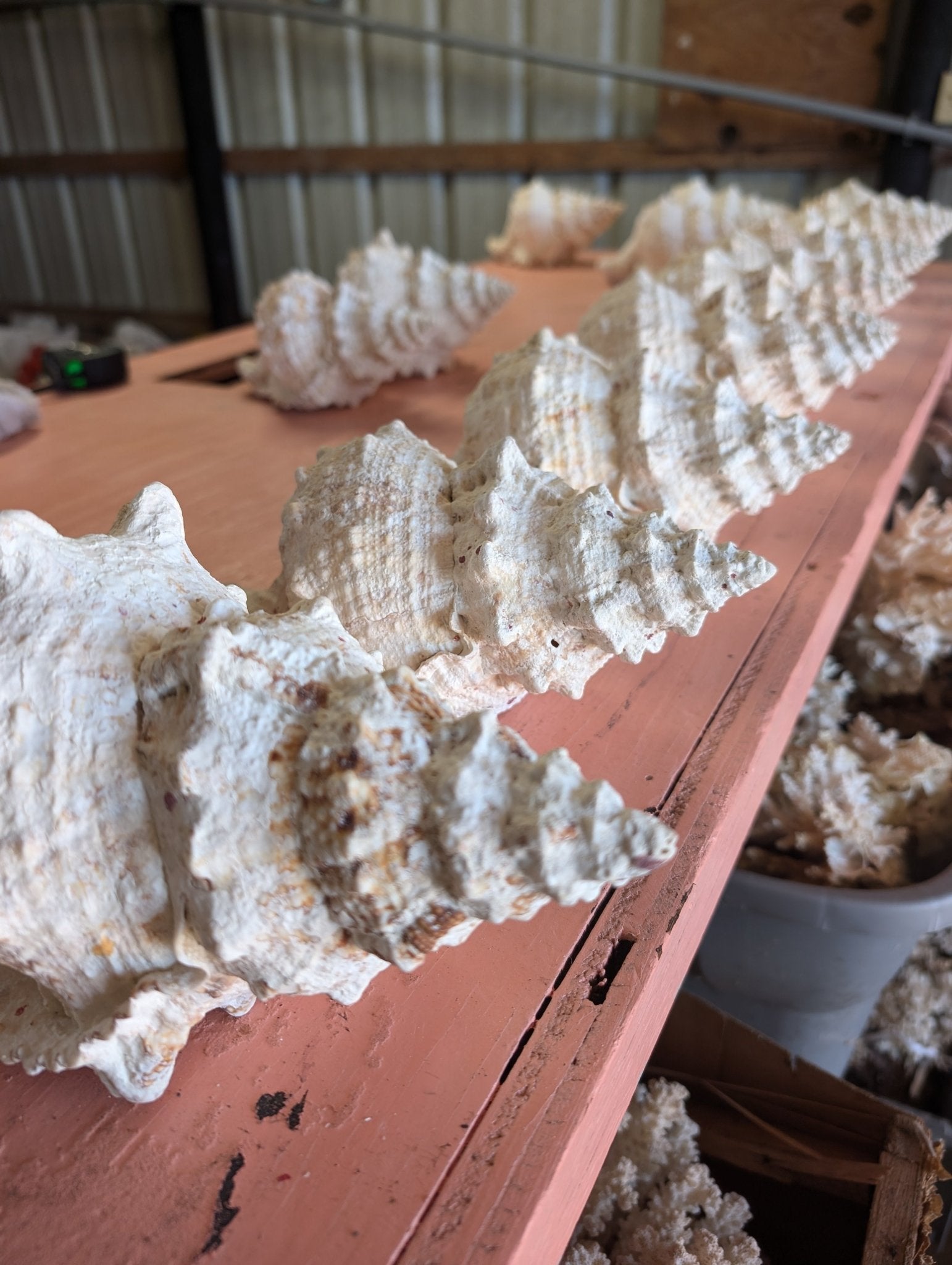The shells in the photos showcase the 8" and 10"+ sizes for comparison, giving you a clear sense of their size and distinctive beauty.