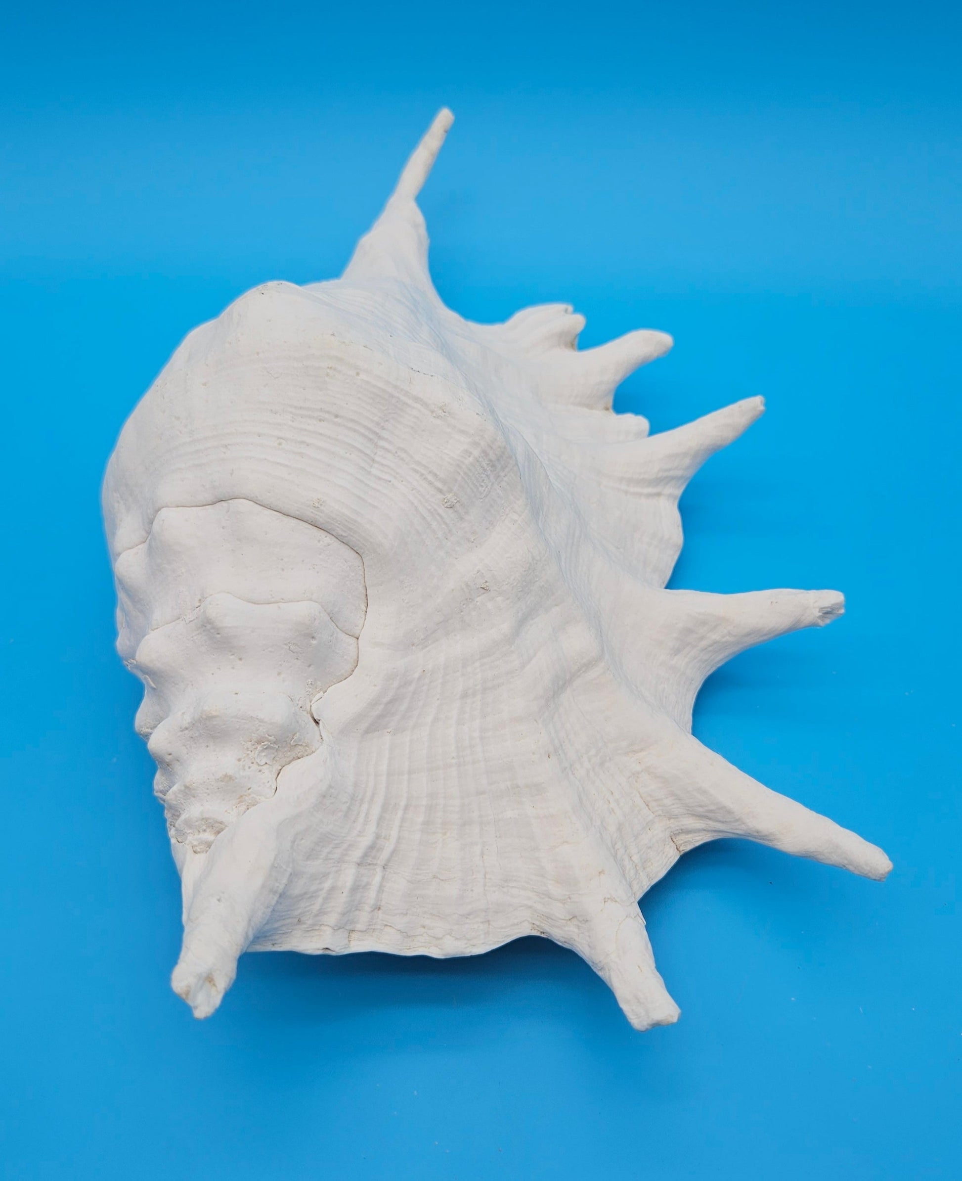 Bring the essence of the ocean into your home with this extraordinary white Lambis truncata shell. Its bold form and refined presence make it a standout piece for collectors and coastal living enthusiasts alike.