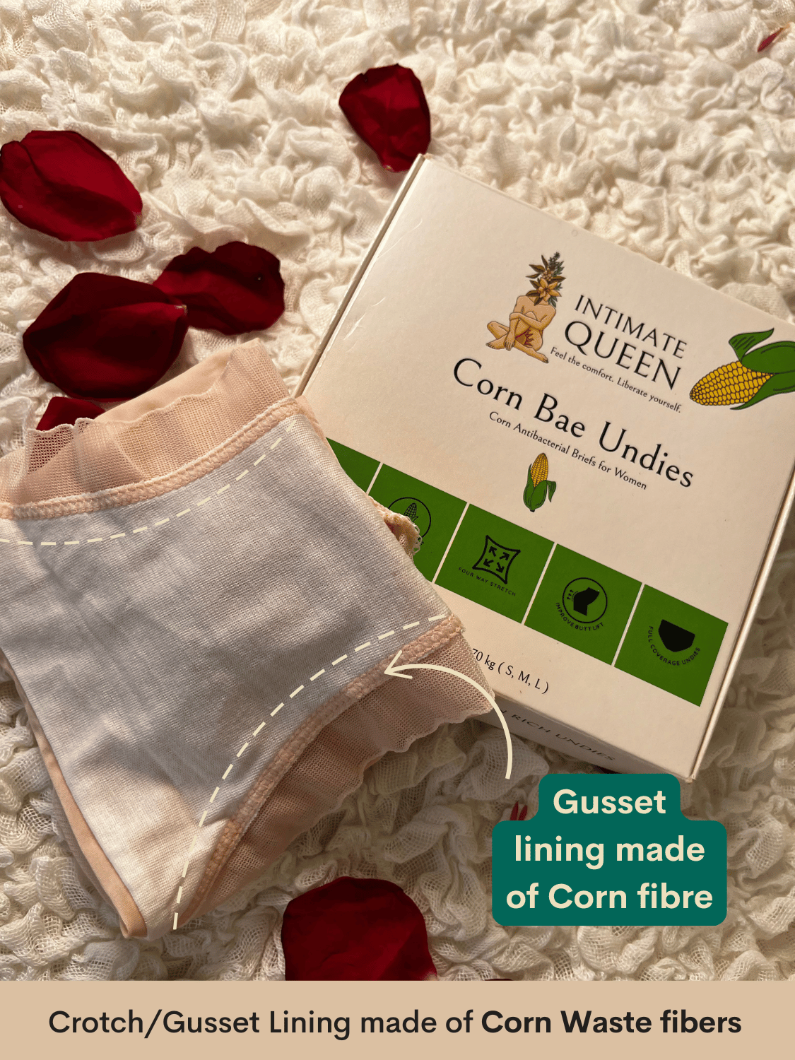 Layela combines plant-based lace elegance with everyday softness. Made with a cotton + PLA corn blend gusset and viscose outer body, this brief offers a cooling touch and airy breathability, especially for long wear and sensitive days.