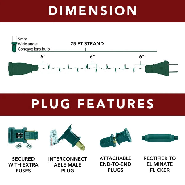Elevate your space with our LED 5mm Wide Angle Concave Lens Bulbs. In a box of 25 strands, green-wired for ease, these UL-approved lights offer end-to-end connectivity. Designed for commercial use, the warm white glow spans 25ft with 6" spacing, creating a festive ambiance. Weighing 18 lb, the compact case (8x2x1.5in) holds enchantment for your decor. Light up your world effortlessly!