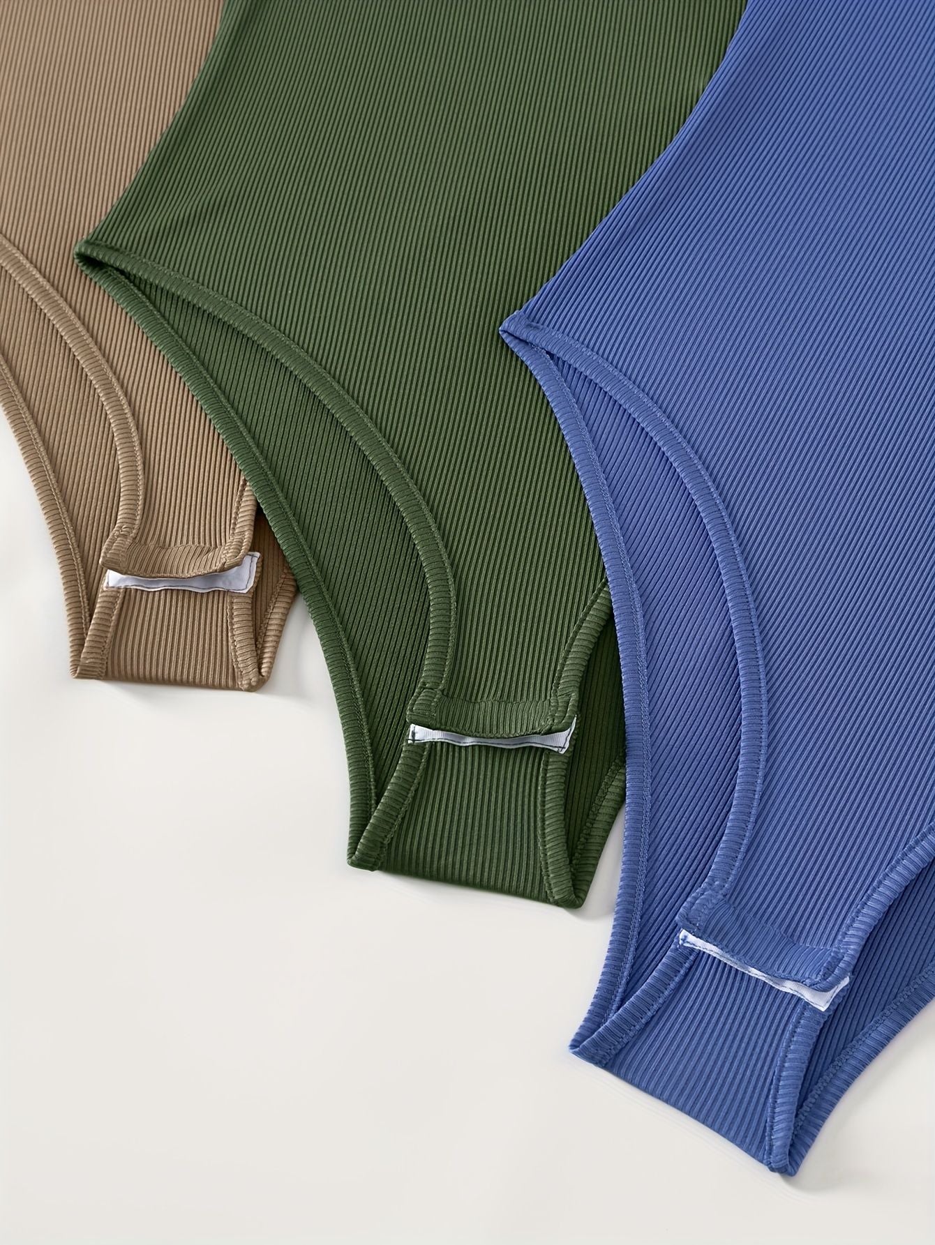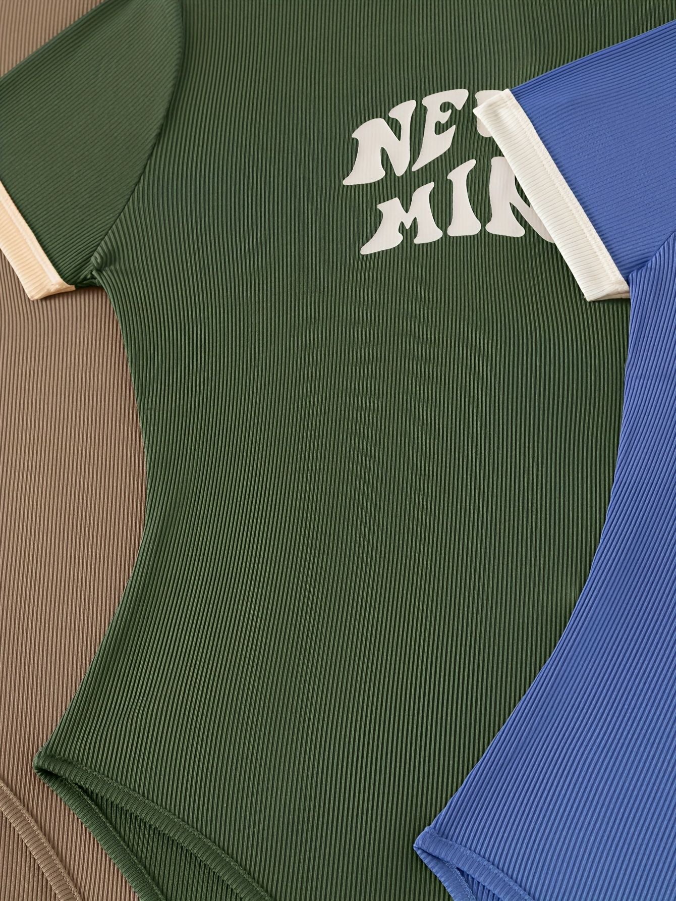 Letter Print Bodysuit 3 Pack, Casual Crew Neck Short Sleeve Bodysuit, Women's Clothing