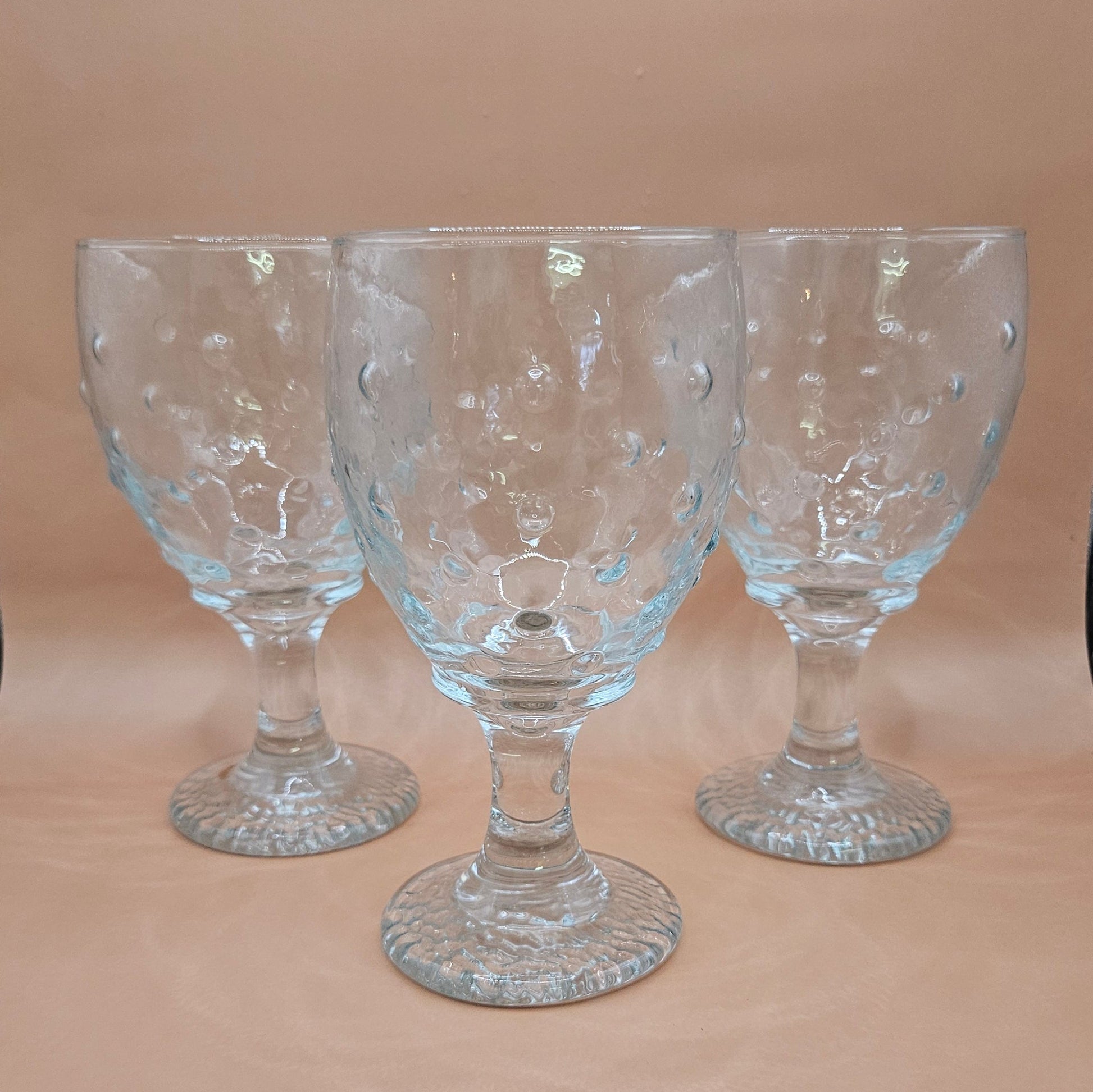 Set includes 3 clear glass water goblets