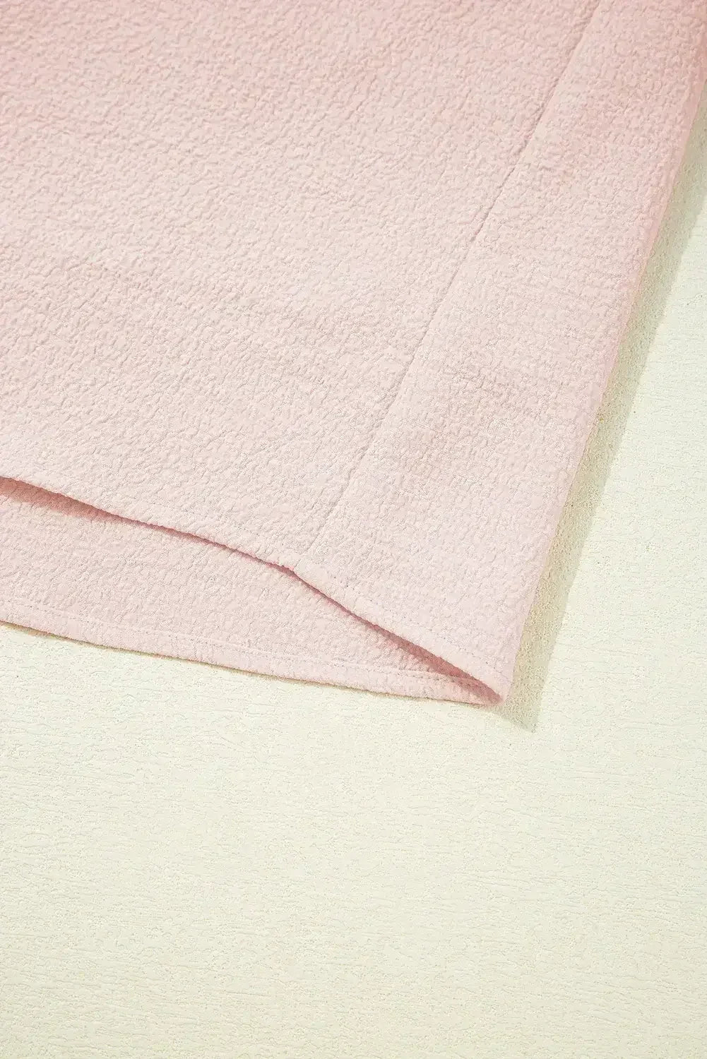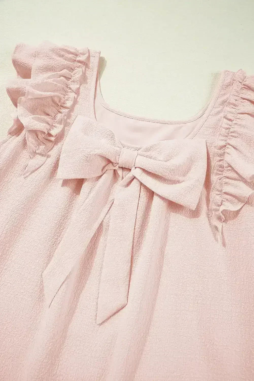 Light Pink Textured Flutter Sleeve Square Neck Bow Back Mini Dress