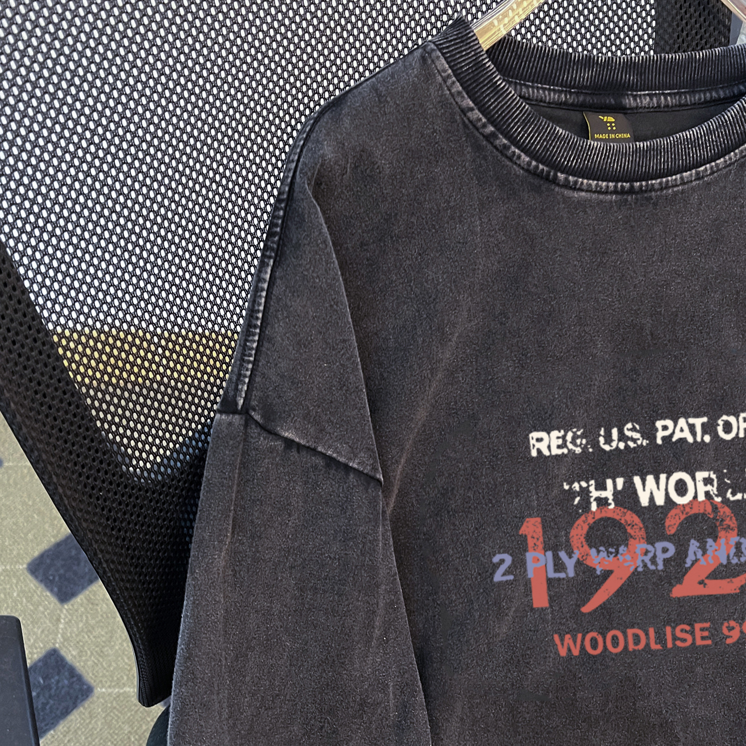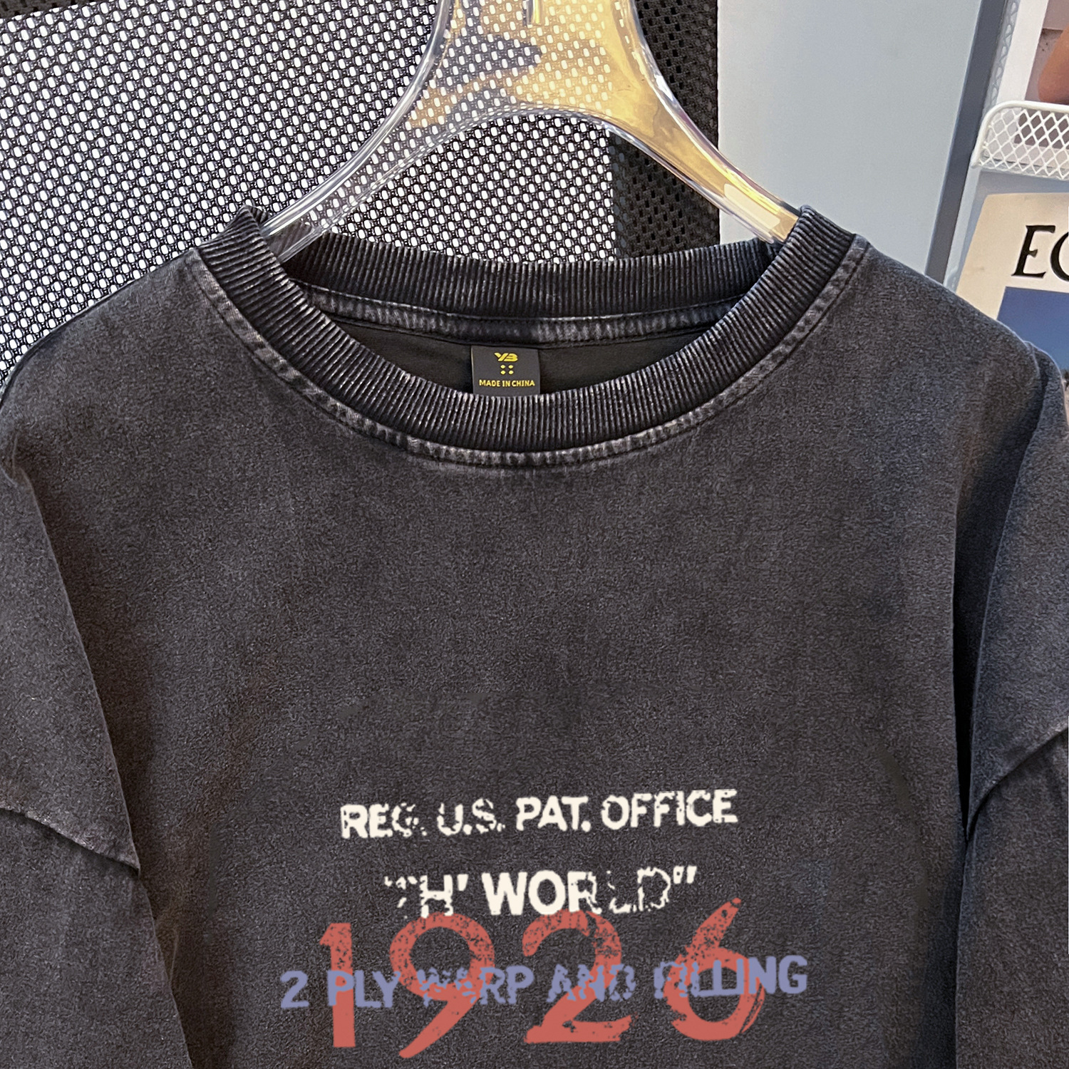 Loose Autumn Winter Fleece Lined Thickened Couple Outdoor Washed Distressed Composite round Neck Print Sweatshirt Women Coat
