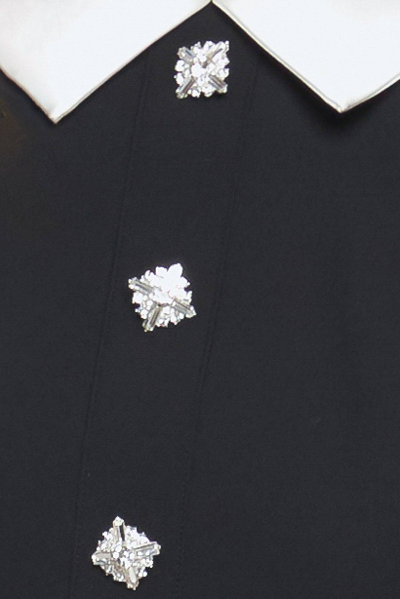 A solid woven mini dress featuring collar, sleeveless, front button detail and back zipper closure