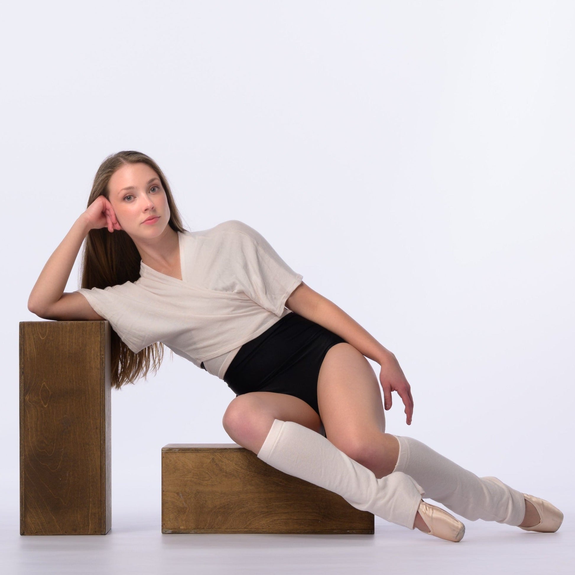 Luxe Cropped Sweater Knit Wrap Top Ballet Warm Up - Peach Ivory