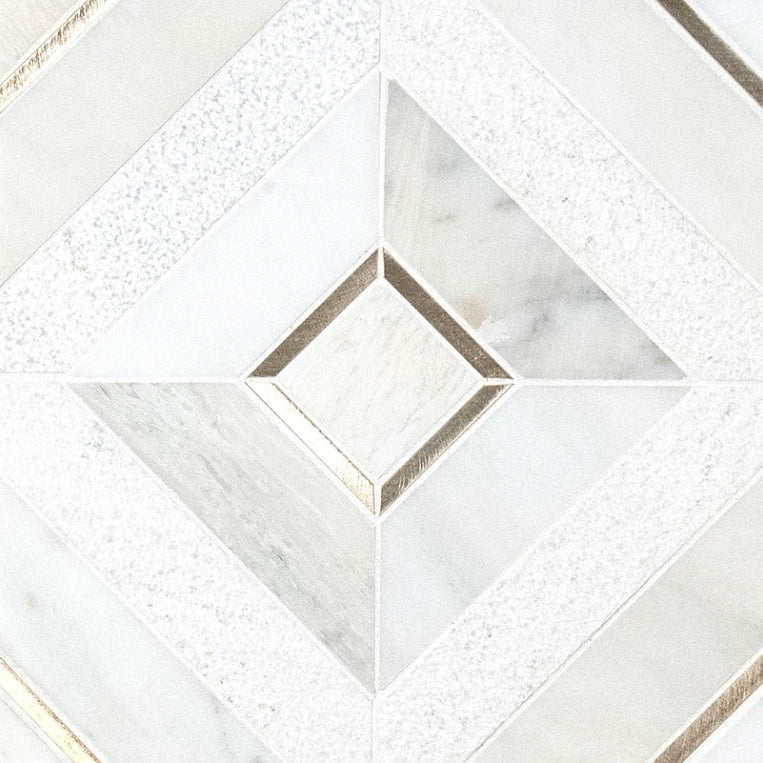 Cool, neutral stone and gold accents give Verona Gold Pattern Tile a soft, romantic feel, adding timeless elegance to a space. An assembly of varying shapes and lines add architectural dimensionality to bathroom walls, kitchen backsplashes, accent walls, countertops, and more. The tile’s multi-finish adds eye-catching contrast and elegance. Verona Gold Pattern tile complements a range of design styles and color schemes and is the perfect solution for your residential or commercial space. Greenguard Indoor Air Quality Certified®, this pattern tile is durable, mesh-mounted for easy installation, and offers trouble-free maintenance.
